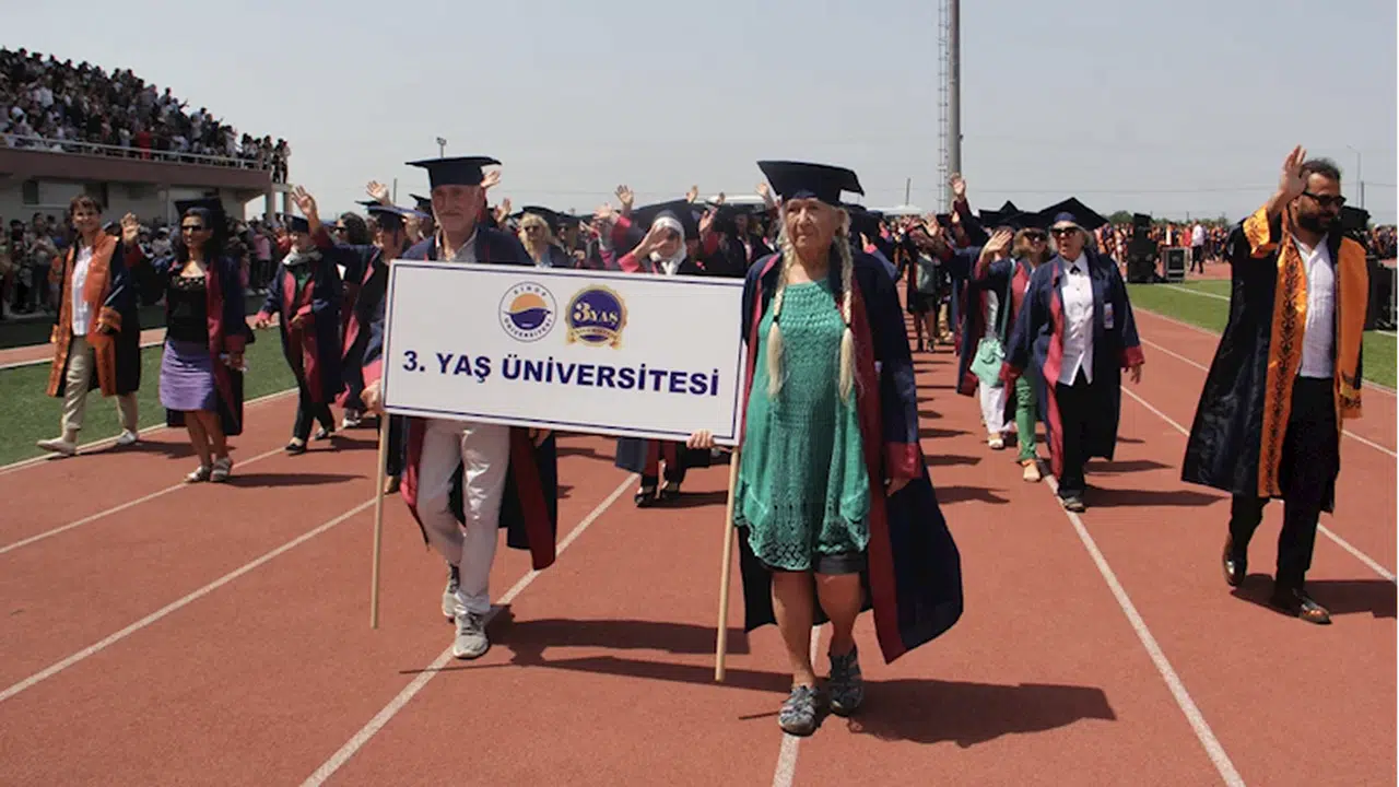Sinop Üniversitesi tarafından üniversite stadyumunda gerçekleştirilen mezuniyet törenine katılan 60 yaş ve üzeri mezunlar, üniversiteden mezun olan öğrencilerle birlikte kortej yürüyüşüne katıldı. Yürüyüş süresince 3. Yaş Üniversitesi yazılı pankart taşıyan ve çoğunluğu emeklilerden oluşan "kıdemli üniversitelilere", öğrenci aileleri ve protokol üyeleri de alkışlarla eşlik etti.