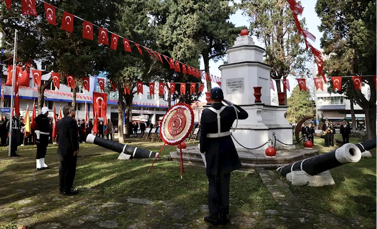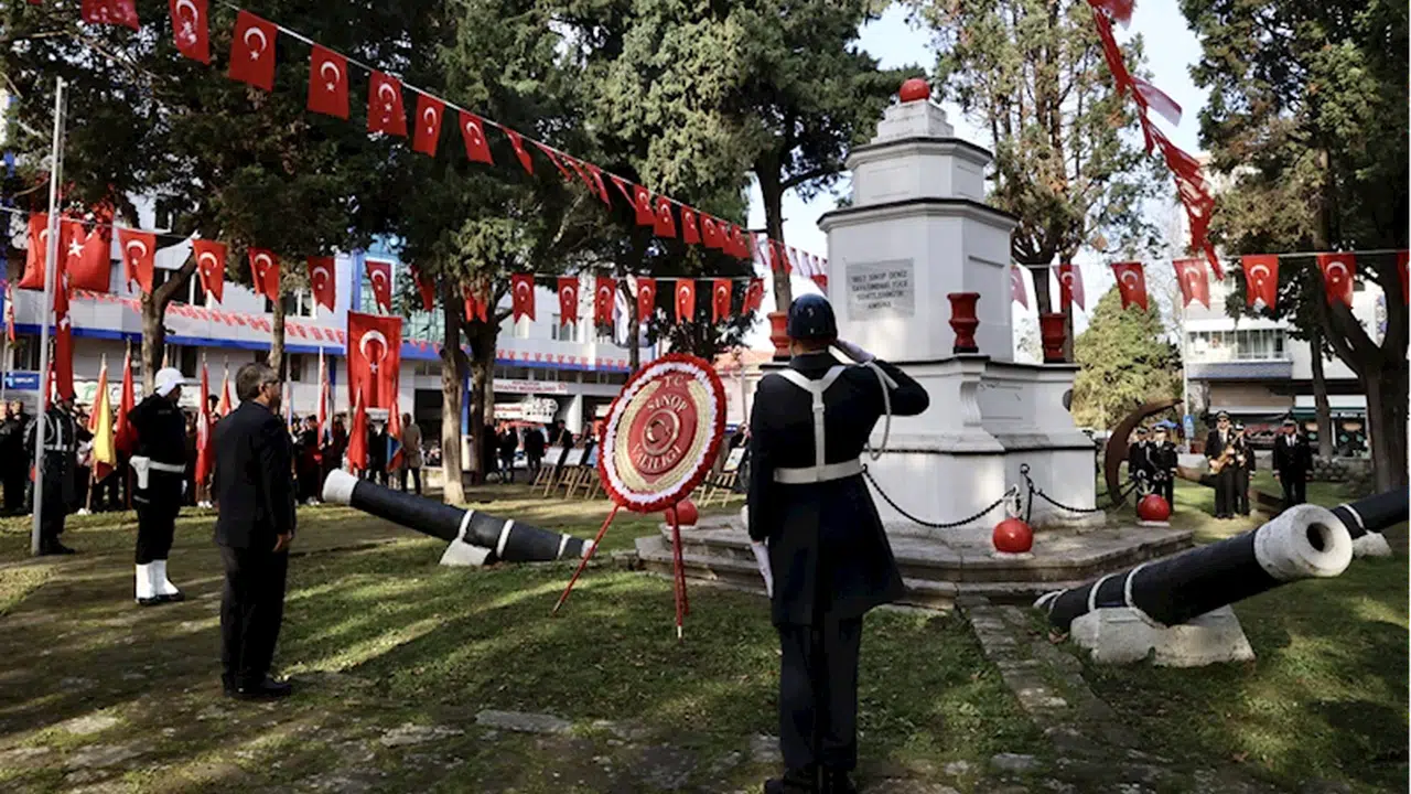 Sinop Deniz Şehitliği'nde düzenlenen anma töreni, Vali Mustafa Özarslan ve Belediye Başkan Yardımcısı Aysun Özsönmez'in Şehitler Anıtı'na çelenk sunmasıyla başladı.