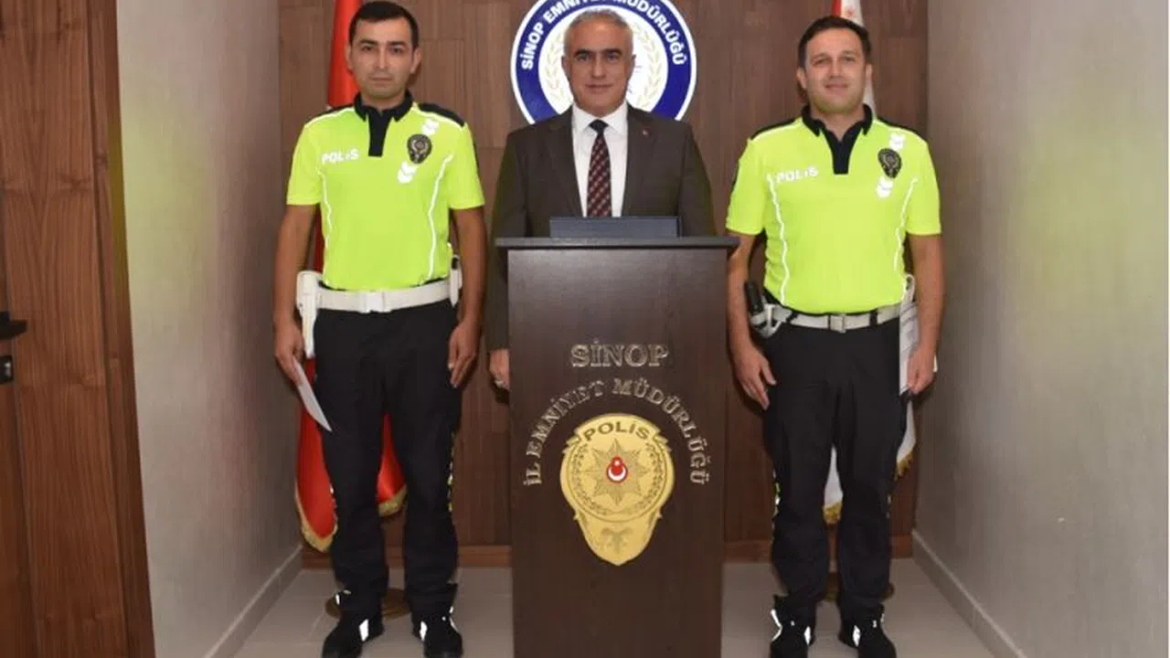 Sinop'ta yaşlı adamı mahsur kaldığı kayalıktan sırtına alarak kurtaran polislere teşekkür belgesi