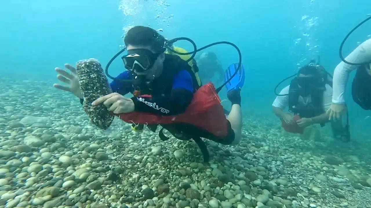 Akdeniz Üniversitesi Su Ürünleri Fakültesi'nden Prof. Dr. Mehmet Gökoğlu ve öğrencilerden oluşan su altı topluluğu denizlerdeki kirliliğe dikkati çekmek için dalış yaptı. Konyaaltı Sahili'nde 'deniz ve kıyı kirliliği farkındalığı' adını verdikleri dalışta deniz dibinde çok sayıda çöp ve atıkla karşılaşıldı. Yanlarında getirdikleri çöp torbalarıyla dalış yapan öğrenciler, su altında içerisine taş ve plastik atık sıkıştırılmış plastik şişeler, içerisi taş dolu kırık boya kovası ve içerisine yine taş doldurulan plastik poşetler dikkati çekti.