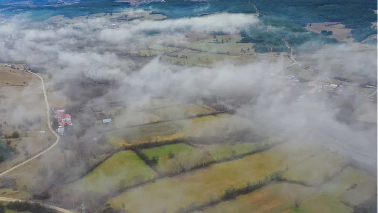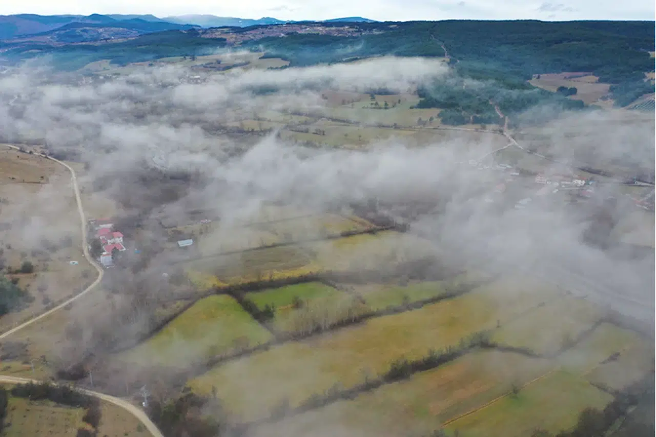 Sisle kaplanan Ilgaz Dağı etekleri havadan görüntülendi