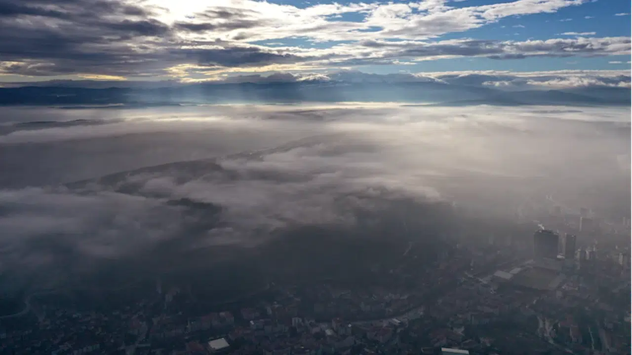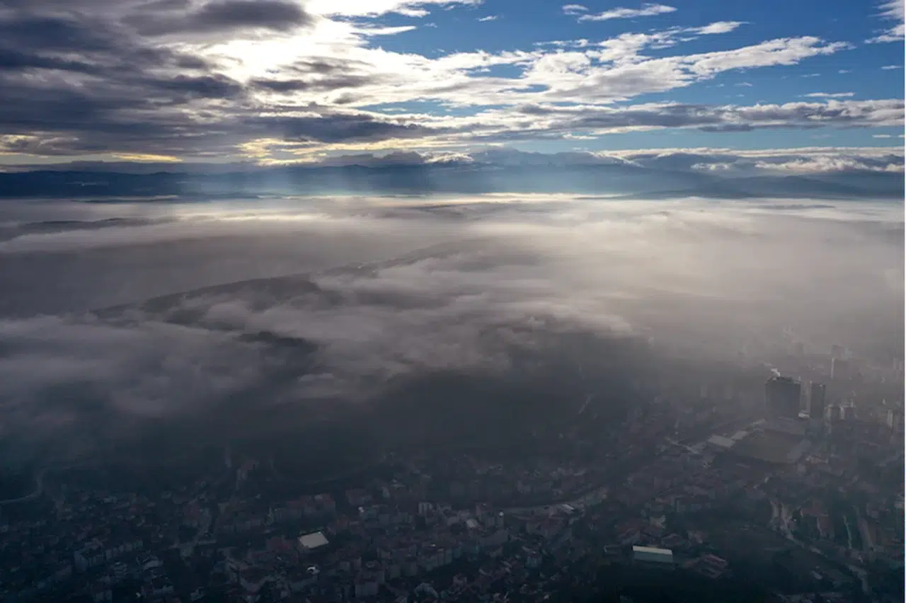 Sabah saatlerinde şehrin üzerine yayılan sis nedeniyle binalar kısmen sis altında kaldı.