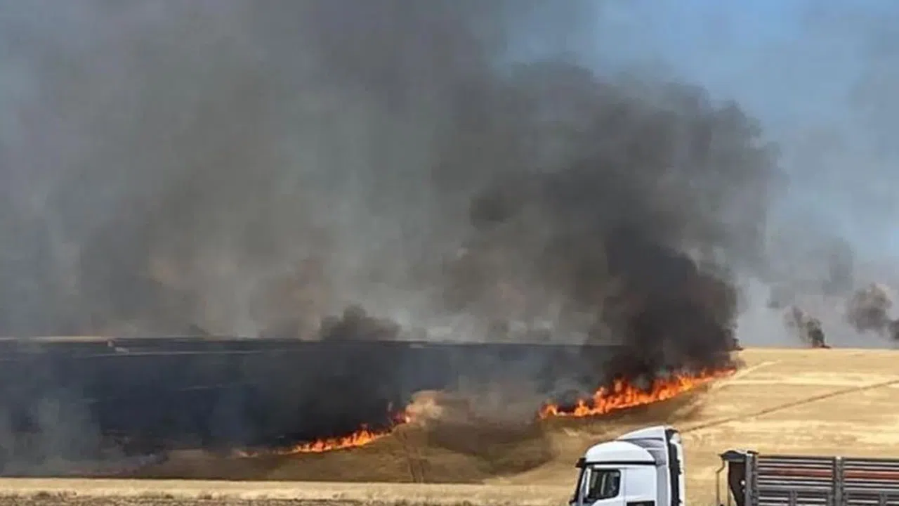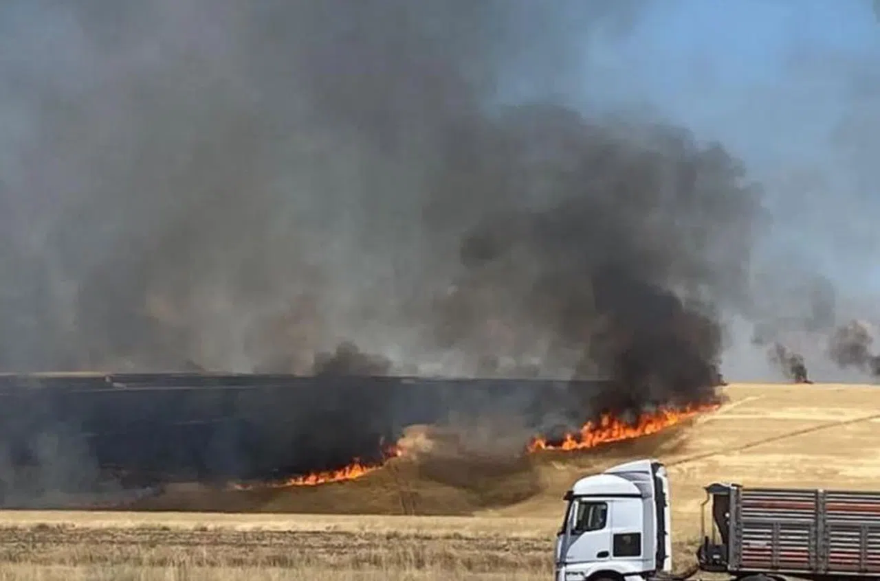 Sivas’ın Kangal ilçesinde buğday tarlasında yangın
