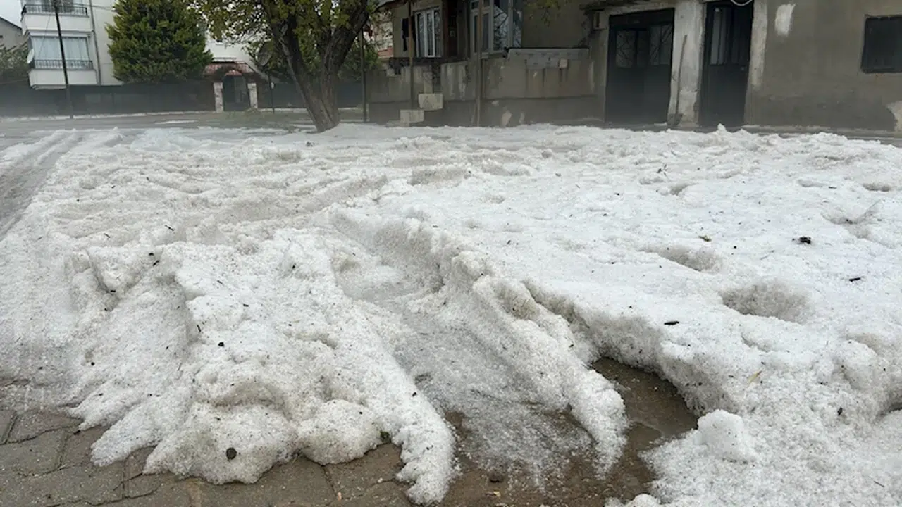 İnan YAMAN/ UŞAK, (DHA)- UŞAK'ın Sivaslı ilçesinde sağanak ve dolu yağışı sonrası bazı cadde ve sokaklar beyaza büründü.