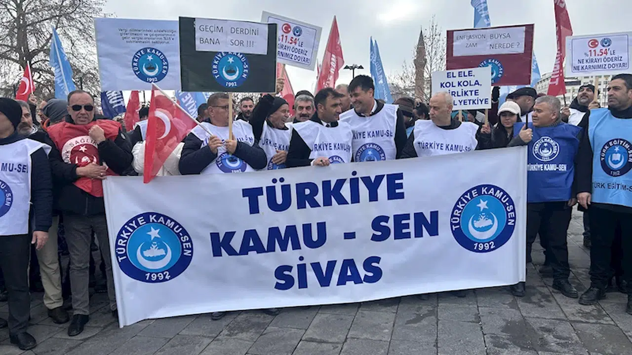 Türkiye Kamu-Sen Sivas İl Başkanlığı tarafından Cumhuriyet Meydanı’nda düzenlenen basın açıklamasıyla 2025 yılının ilk 6 ayı için kamu çalışanlarına ve memur emeklisine verilen yüzde 11’lik zamma tepki gösterildi. Yaklaşık 100 kişinin yer aldığı basın açıklamasında katılımcılar ellerinde çeşitli dövizler taşıyarak, ek zam ve refah payı istedi.