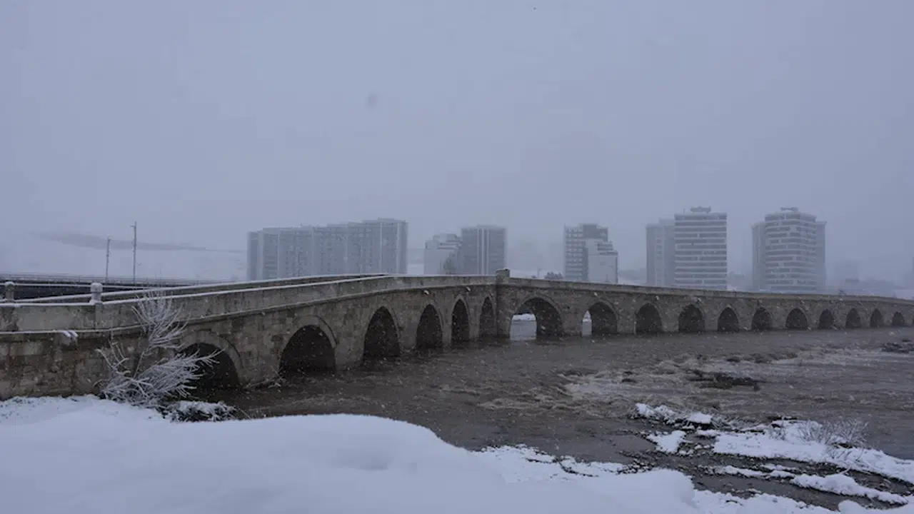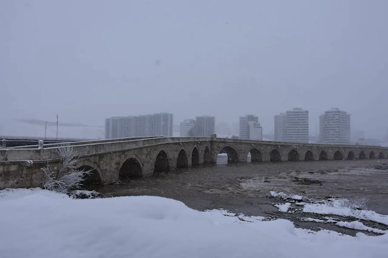 Kar yağışı sonrası Cumhuriyet Meydanı ile Tarihi Eğri Köprü'nün bulunduğu bölgelerde güzel görüntüler oluştu. Baharla birlikte ağaçların çiçek açan dalları da kar altında kaldı. Kar yağışının gün içinde devam edeceği, yarın da kısmen etkili olacağı tahmin ediliyor. (DHA)