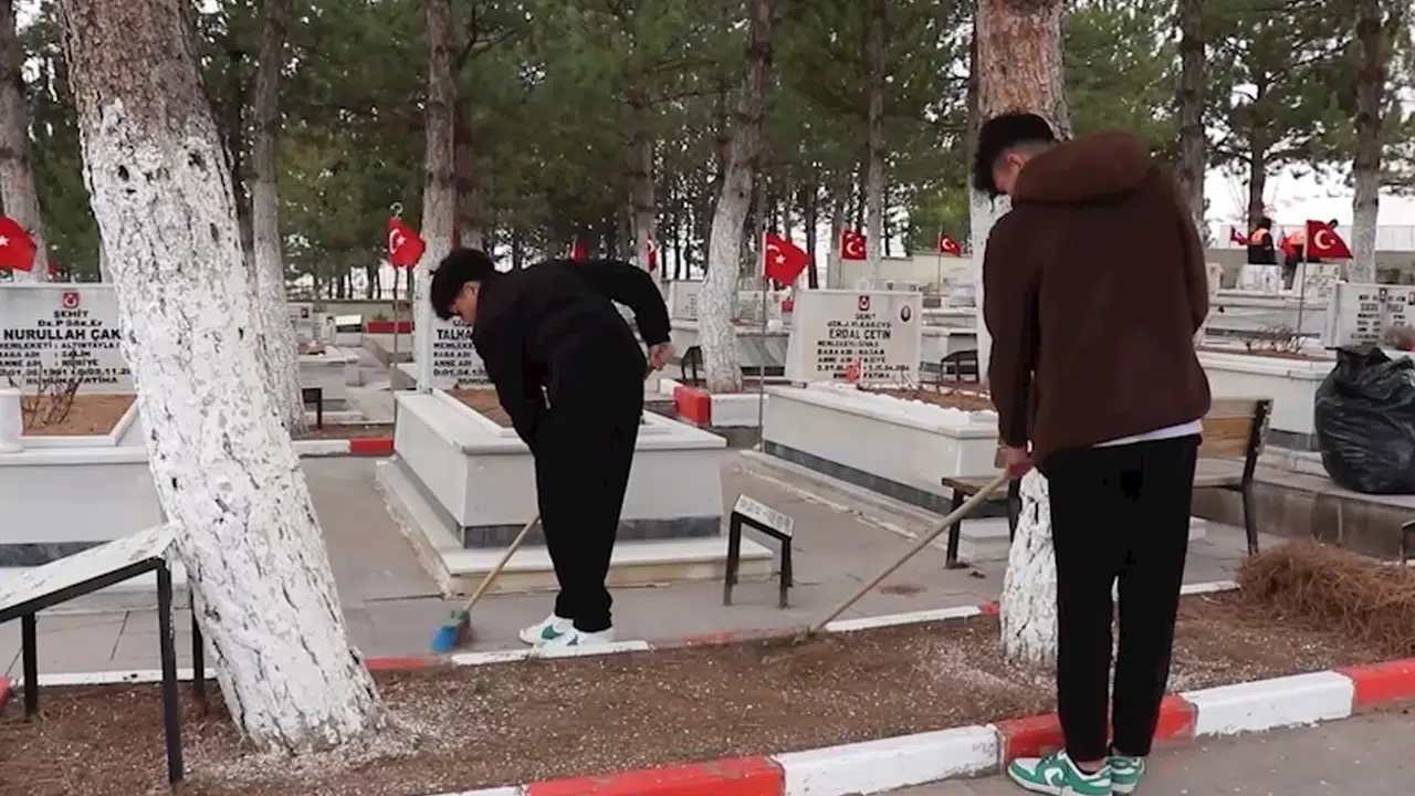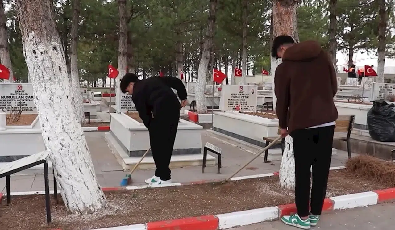 Sivas'ta liseli öğrenciler şehit mezarlarının bakımını yaptı