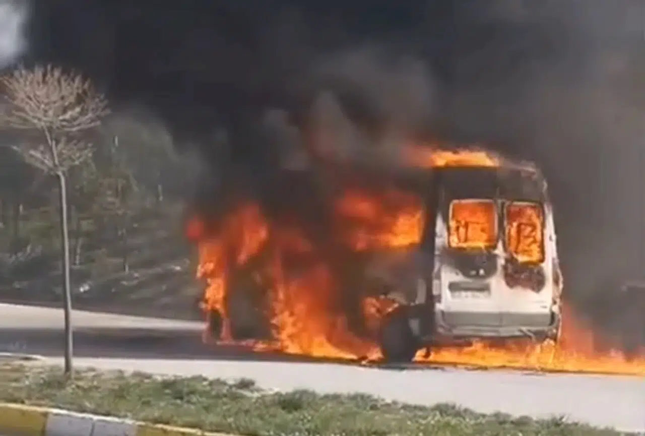 Nuri Demirağ Havalimanı yolunda ilerleyen, havalimanına personel taşıyan Ç.U. (34) yönetimindeki 58 S 0275 plakalı servis minibüsünde, saat 07.00 sıralarında yangın çıktı. Minibüsteki alevlerin büyümesiyle servis şoförü, aracın yolun kenarına çekerek personeli indirdi. Jandarma ve itfaiye ekiplerine haber verildi. İhbarla olay yerine gelen Sivas Belediye itfaiye ekipleri yaklaşık yarım saat süren çalışma ile yangını söndürdü. Minibüs kullanılamaz hale gelirken, yangınla ilgili inceleme başlatıldı. (DHA)