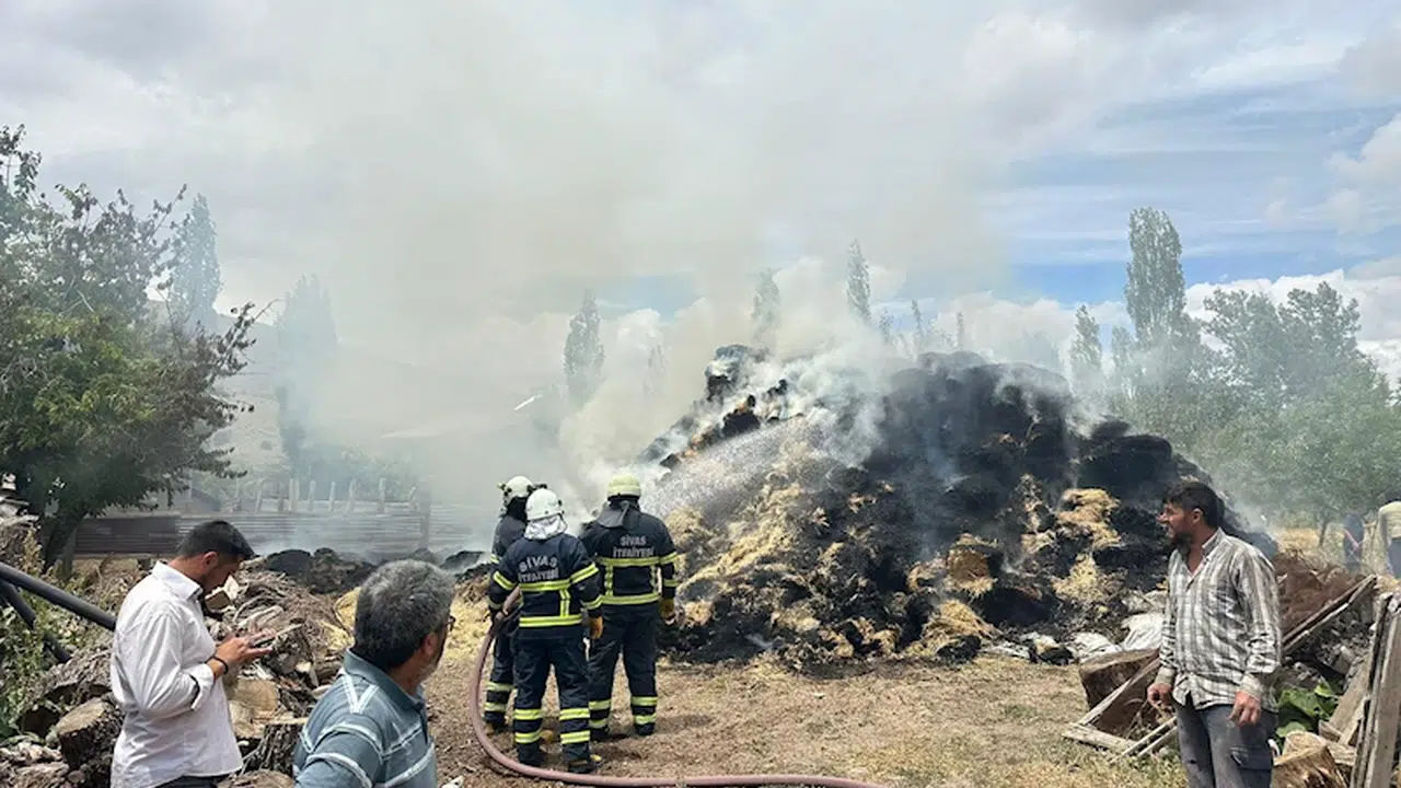 Sivas’ta yangında bin balya saman zarar gördü