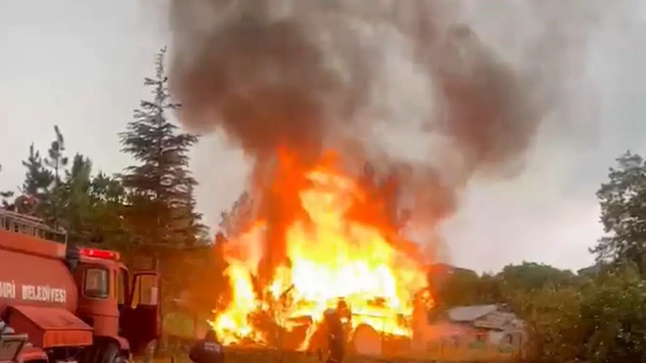 Sivas'ta yıldırım düşmesi sonucu çıkan yangında baraka kül oldu