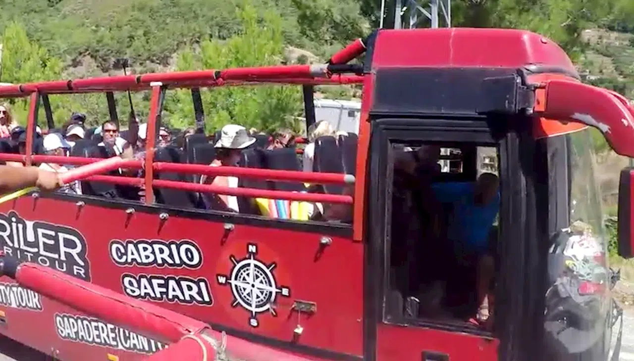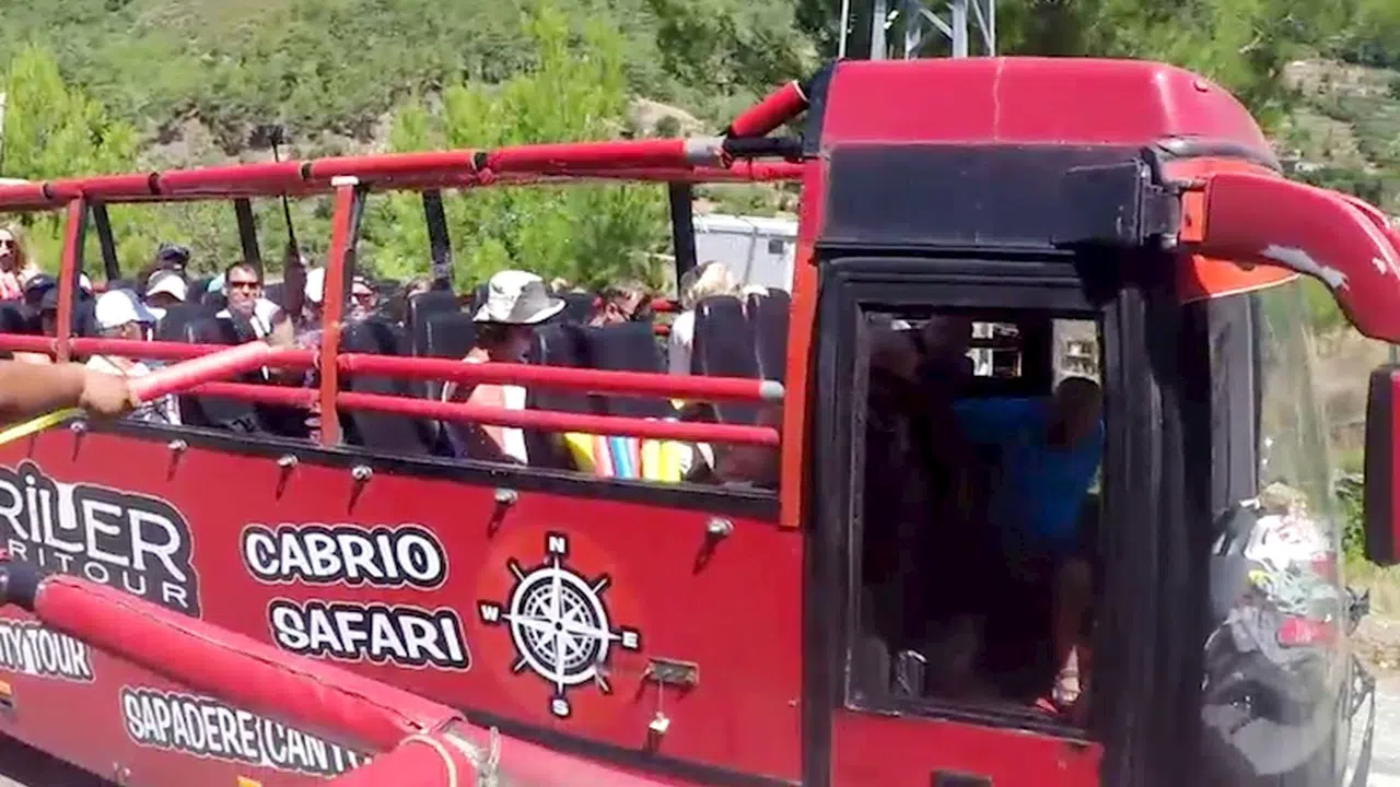 Alanya'da turistlerin üstü açık otobüsle safari yaptığı gezide, şoförlerden biri klakson çalarak önündeki otobüsü durdurdu. Eğimli yolda yan yana duran üstü açık 2 otobüsteki turistler, birbirine oyuncak tabancalarla su sıktı. Bu sırada turistlerin eğlencesine ortak olmak isteyen şoförlerden biri, sürücü koltuğundan kalkıp yanındaki kovayla onları ıslatmaya çalıştı. Ancak şoförün el frenini çekmeyi unuttuğu otobüs, eğimli yolda geri gitmeye başladı. Şoför tekrar yerine geçmeye çalıştığı sırada 20'den fazla turistin bulunduğu otobüs, hızlanıp yaklaşık 30 metre aşağıda yoldan geçmek için turistlerin su savaşı oyununun bitmesini bekleyen otomobile çarparak durup, şarampole yuvarlanmaktan kurtuldu. Turistler ile otomobildekilerin kısa süreli panik yaşadığı kazada, iki araçta da hasar oluştu.