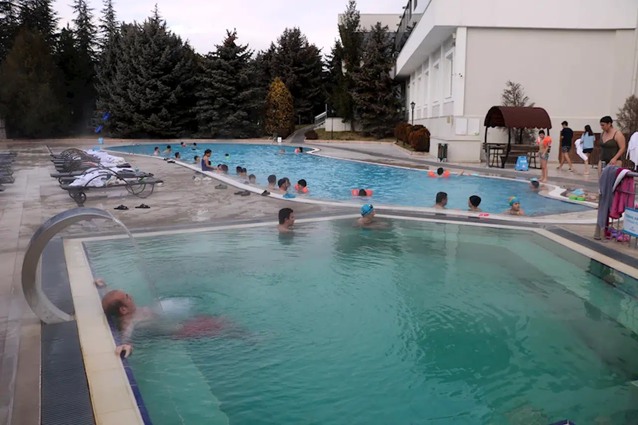 Afyonkarahisar'da bulunan termal otellerdeki dış havuzlar, özellikle kış aylarında tatilcilerin en çok tercih ettiği yerler arasında yer alıyor. Aileler ve çocukları hava sıcaklığının 0-5 derece civarında seyrettiği, zaman zaman da kar yağışıyla birlikte sıfırın altına düştüğü günlerde termal havuzlara girip, tatilin keyfini çıkartıyor. 25 bin yatak kapasitesine sahip kentte sömestirin de etkisiyle yüzde 100'e yakın doluluğun yaşandığı termal tesislerde tatilciler, dış havuzlara girip, eğlendi. Zafer Turistik Otelciler ve İşletmecileri Derneği (ZAFTODER) Başkanı Ali Gümüşhan, Afyonkarahisar'daki otellerin sömestir sonuna kadar yüzde 100'e yakın doluluğa ulaşacağını belirterek, "Tüm Türkiye'de, Afyonkarahisar'da sömestir yoğun geçiyor. Otellerimiz yüzde 95-100'e yakın dolu. Rezervasyonlar devam ediyor" dedi.