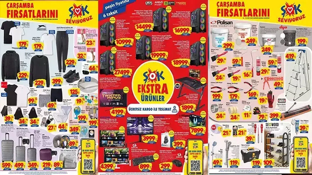 Şok marketlerde hafta sonuna özel aktüel ürünler kampanyası kapsamında 11 Kasım – 18 Kasım 2023 tarihleri arasında geçerli olacak fırsatları aşağıdaki katalogda inceleyebilirsiniz. Şokta televizyon elektrik süpürgesi, bulaşık makinesi, klima gibi birçok ürünü bulabilirsiniz.