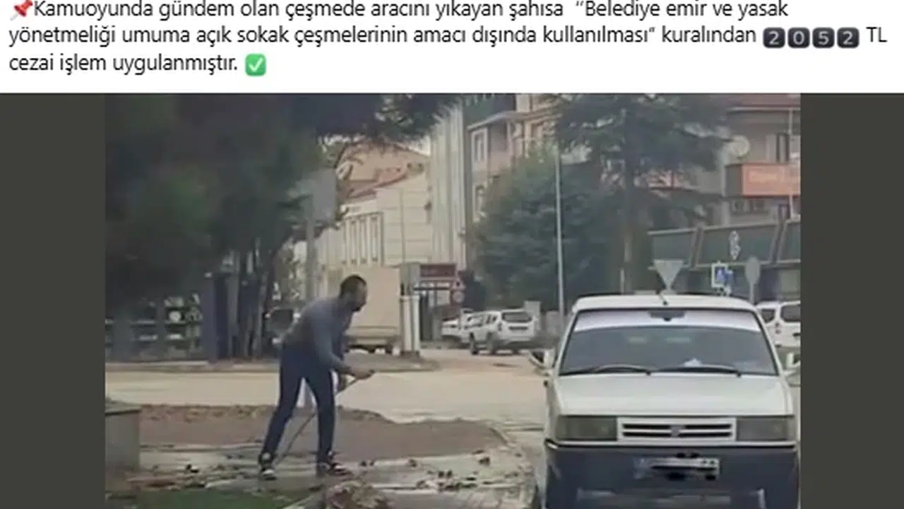 Sokak çeşmesine hortum takıp aracını yıkayan sürücüye 2 bin 52 TL ceza