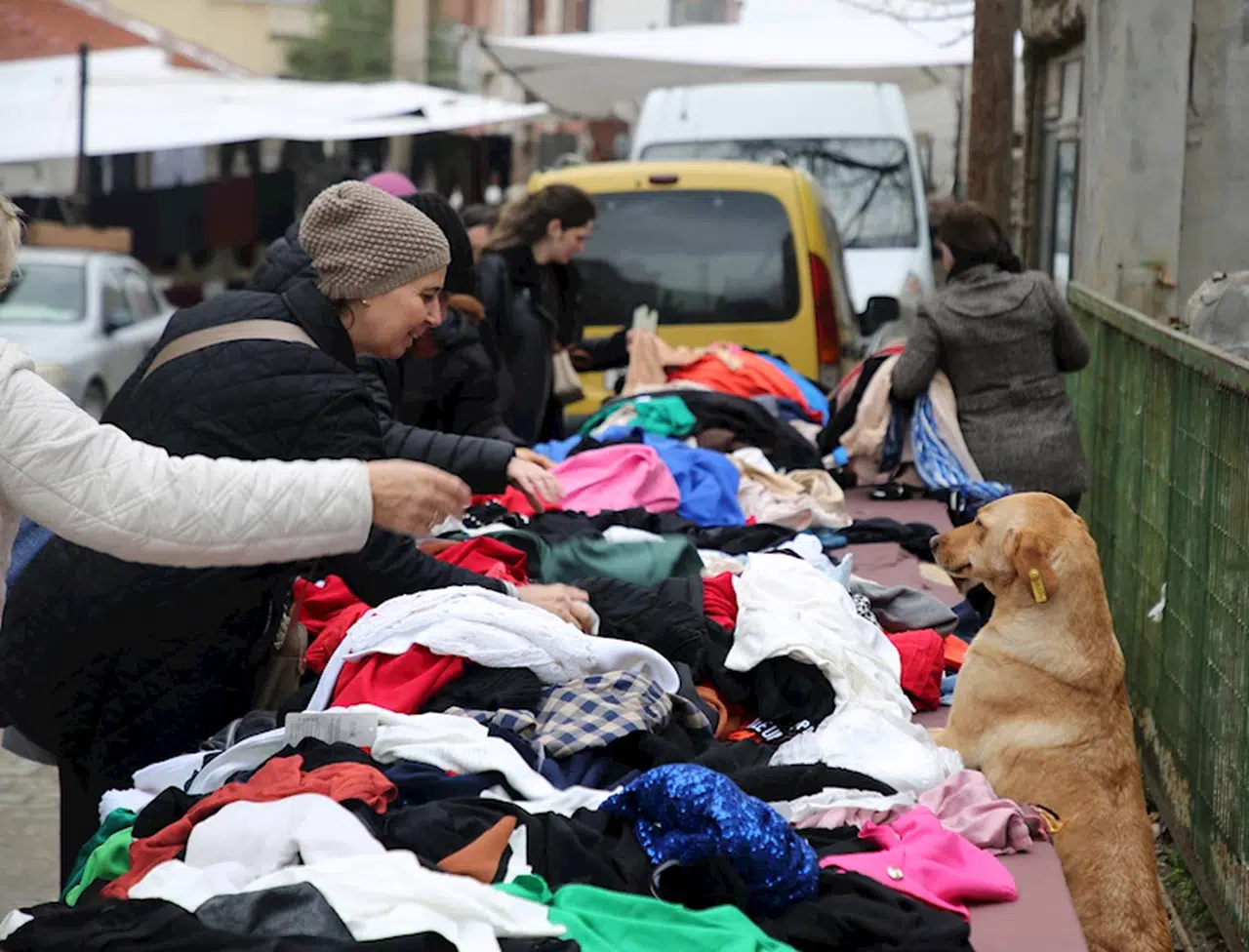 Ünsal YÜCEL/ EDİRNE,(DHA)- EDİRNE'nin Keşan ilçesinde, Sokak Hayvanlarını Koruma Derneği (KE-HAYKO) gönüllüleri, halk pazarında açılan tezgahta bağışlanan giysileri satıp geliriyle sokak hayvanlarının bakım, mama ve klinik tedavisi giderlerine katkı sağlıyor. Tezgahın başından ayrılmayan ‘Çiçek’ adlı köpek ise alışverişe gelenlerin maskotu oldu.