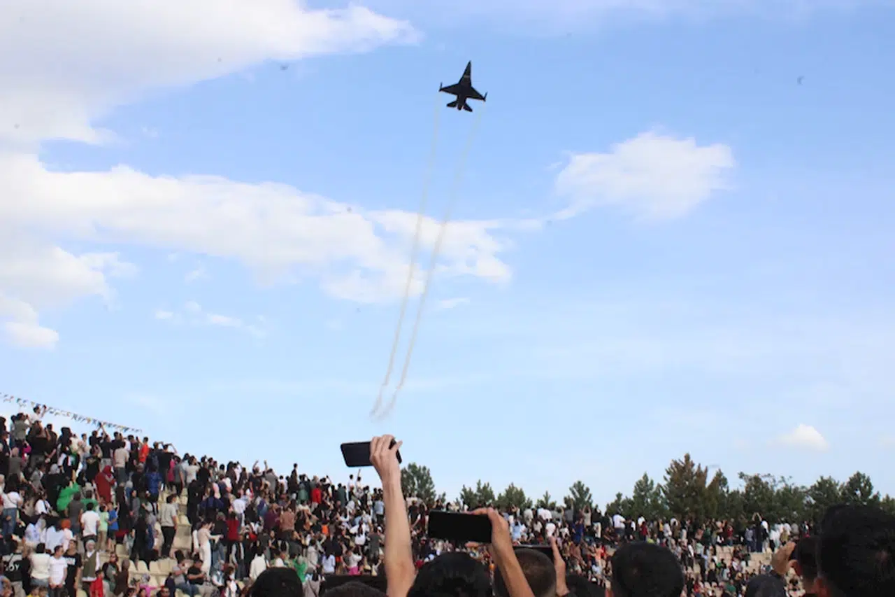 Türk Hava Kuvvetleri SOLOTÜRK, İnönü Üniversitesi'nin 50'nci kuruluş yıldönümü dolayısı ile Malatya'da gösteri uçuşu gerçekleştirdi. 7'nci Ana Jet Komutanlığı'ndan havalanan SOLOTÜRK ekibi üniversite yerleşkesindeki stadyum üzerinden geçerek akrobatik hareketler sergiledi. Gösteriyi Malatya Valisi Seddar Yavuz, Malatya Büyükşehir Belediye Başkanı Sami Er, 2'inci Ordu Kurmay Başkanı Garnizon Komutanı Tüm General Erman Kiraz, İl Jandarma Komutanı Tolunay Başer ile birlikte bazı kurum müdürleri ve yaklaşık 20 bin vatandaş ilgi ile takip etti. Gökyüzünde akrobatik gösteriler sergileyen SOLOTÜRK ekibinin gösterisini izleyen vatandaşlar cep telefonları ile anı ölümsüzleştirdi. (DHA)