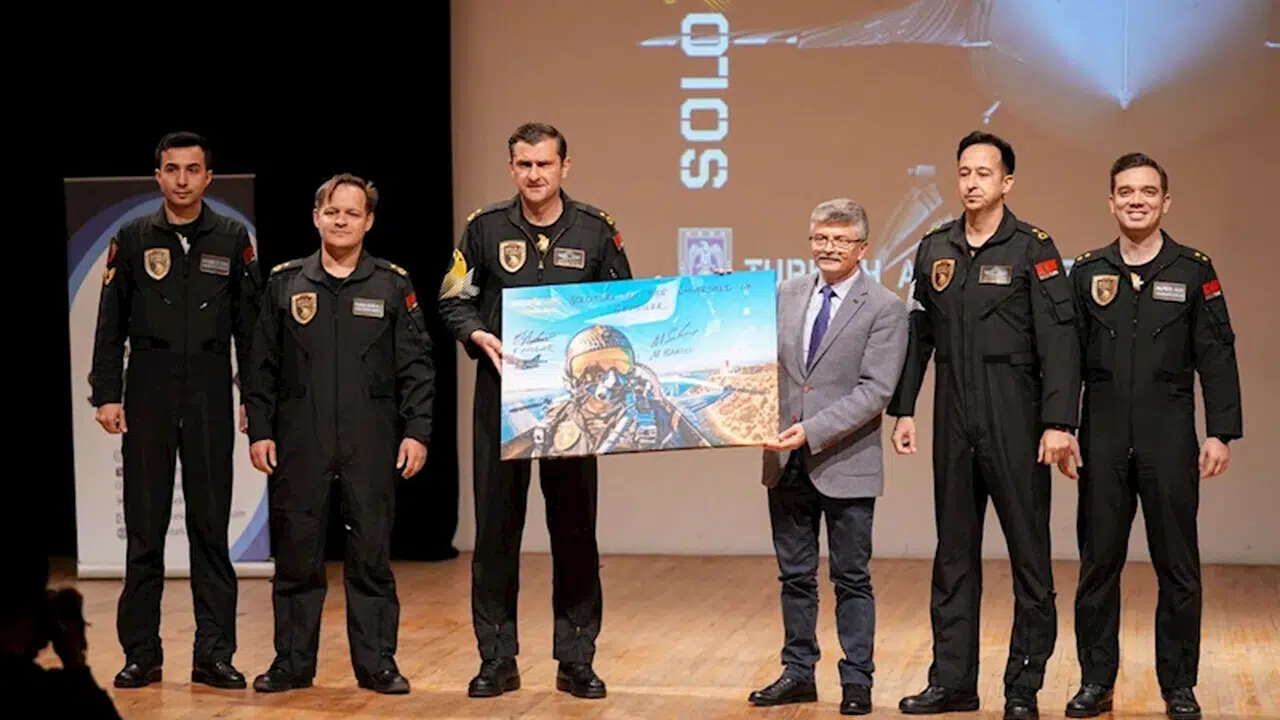 Anadolu topraklarının zor şartlarda kazanıldığına işaret eden Bakıcı, "Bizler de o ruh ve maneviyatla yaşıyoruz. Savunma sanayimiz koşar adımlarla geleceğe gidiyor. Savunma sanayimiz inanılmaz derece gurur verici bir durumda. İHA ve SİHA'lar dünyada sayılı. Milli muharip uçağımız KAAN ise uçuşlarını gerçekleştiriyor" dedi. Binbaşı Mustafa Erhan Aydemir ve Binbaşı Tuna Karalı ise askeri kariyerleri ve SOLOTÜRK ekibine katılmaları ile ilgili bilgiler verdi. Konuşmanın ardından pilotlar, öğrencilerin sorularını yanıtladı. Etkinliğin sonunda Rektör Yardımcısı Prof. Dr. Mehmet Ersan, Ege Üniversite'nin 70. yılına özel olarak hazırlanan anı pulunu SOLOTÜRK ekibine takdim etti. SOLOTÜRK ekibi de kendilerini simgeleyen özel bir resmi Prof. Dr. Ersan'a hediye ederek karşılıklı anı takdiminde bulundu. Ardından SOLOTÜRK ekibi, EGE SAVTEK'in hazırladığı sergiyi gezerek yaptığı maket uçağı inceledi ve imzalarını attı.(DHA)