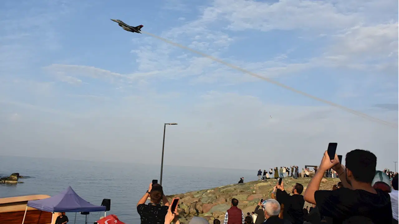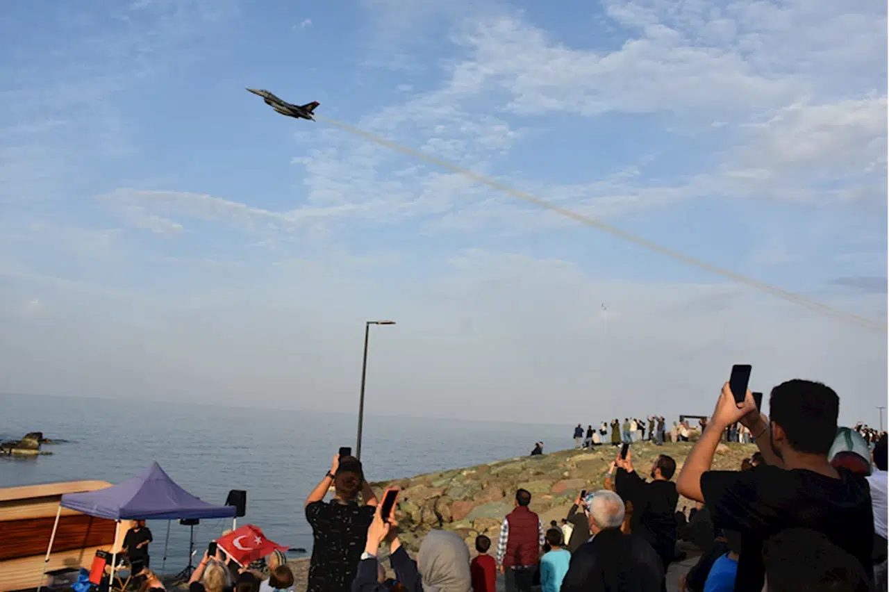 Ganita sahil şeridinde toplanan binlerce kişi, 2 uçakla gerçekleştirilen gösteri uçuşunu ilgi ve heyecanla izledi. Bazı vatandaşlar, gösteriyi cep telefonlarıyla kaydetti.
