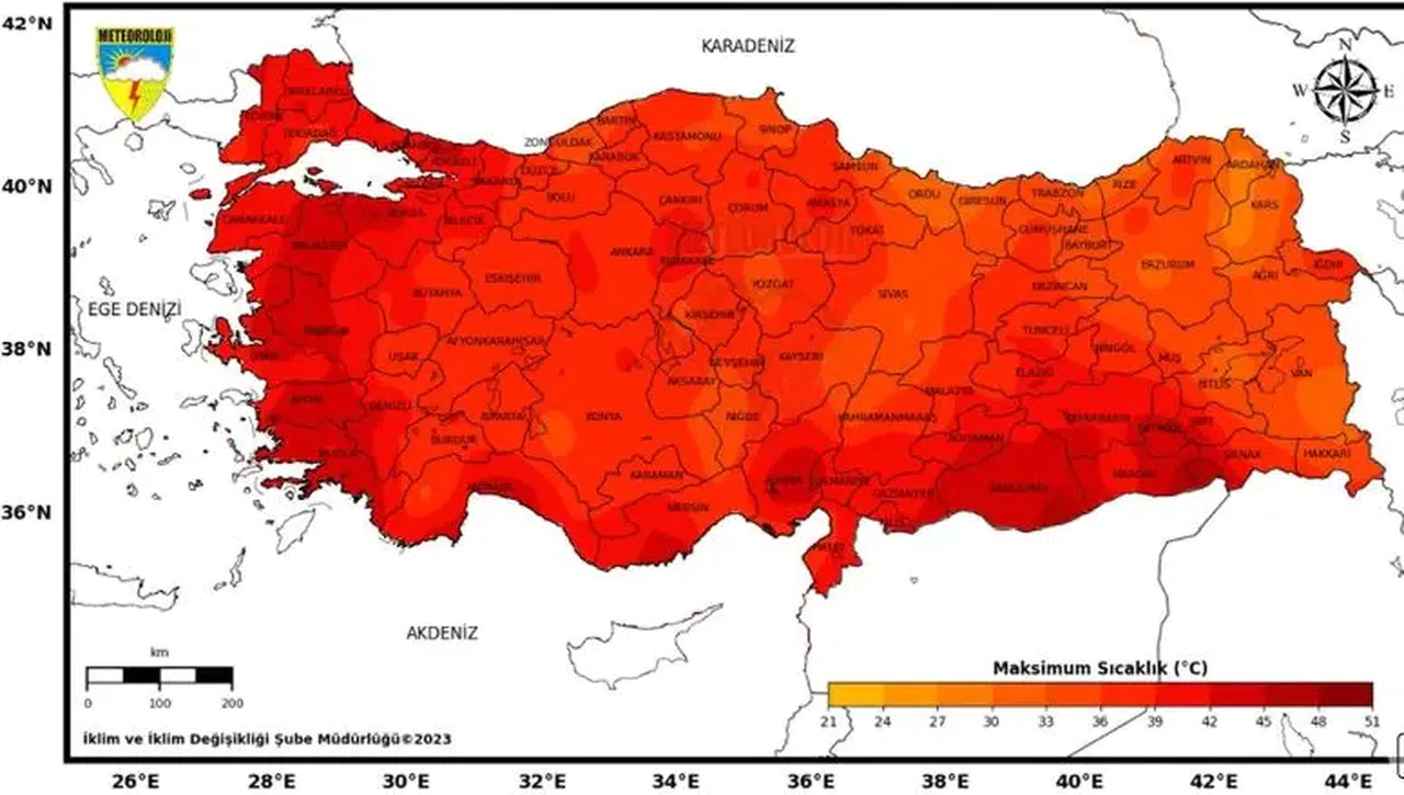 Maksimum sıcaklıklar ise güney ve batı kıyı bölgelerinde 45-48 derecelik sıcaklık bandına ulaştı. 2023 yılı temmuz ayı ortalama maksimum sıcaklıkları, 1991-2020 maksimum normalinin 1,7 derece üzerinde gerçekleşti. Minimum sıcaklıkların özellikle kıyı ve güney kesimlerde olmak üzere uzun yıllar minimum sıcaklıklarının üzerinde gerçekleştiği gözlendi. 2023 yılı temmuz ayı ortalama minimum sıcaklıkları, 1991-2020 minimum normalinin 0,1 derece üstüne çıktı.