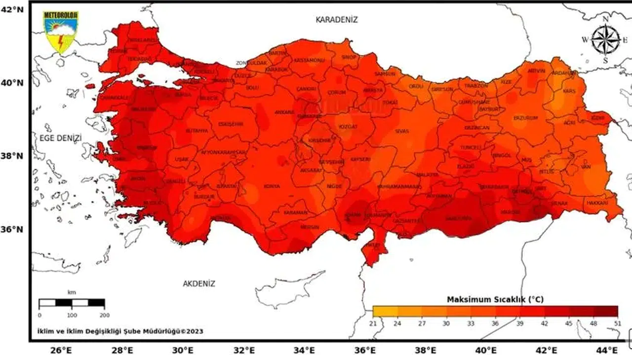 Meteoroloji Genel Müdürlüğü'nün 2023 yılı, temmuz ayına ilişkin hazırladığı 'Sıcaklık ve Yağış Değerlendirmesi Raporu'na göre; 1991-2020 uzun yıllar ortalama sıcaklığı 25 derece olan temmuz ayında, 2023 yılı temmuz ayı ortalama sıcaklığı 25,7 dereceye yükseldi.