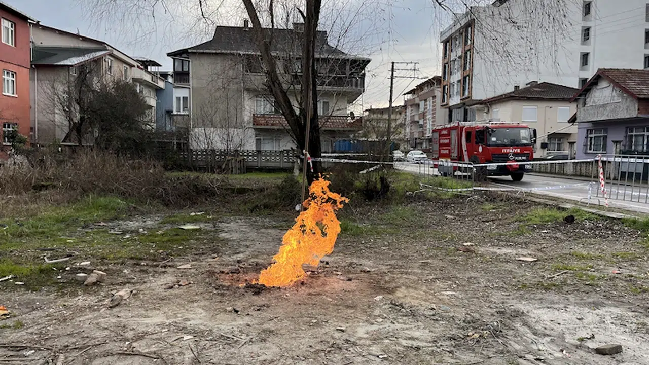 Nazım Özgün ERBULAN-Ardacan UZUN/KARTEPE(Kocaeli), (DHA)-KOCAELİ'nin Kartepe ilçesinde metro çalışması kapsamında yerin 47 metre altındaki sondaj sırasında metan gazından çıktığı değerlendirilen yangın, yaklaşık 3 gündür kontrollü olarak devam ediyor.