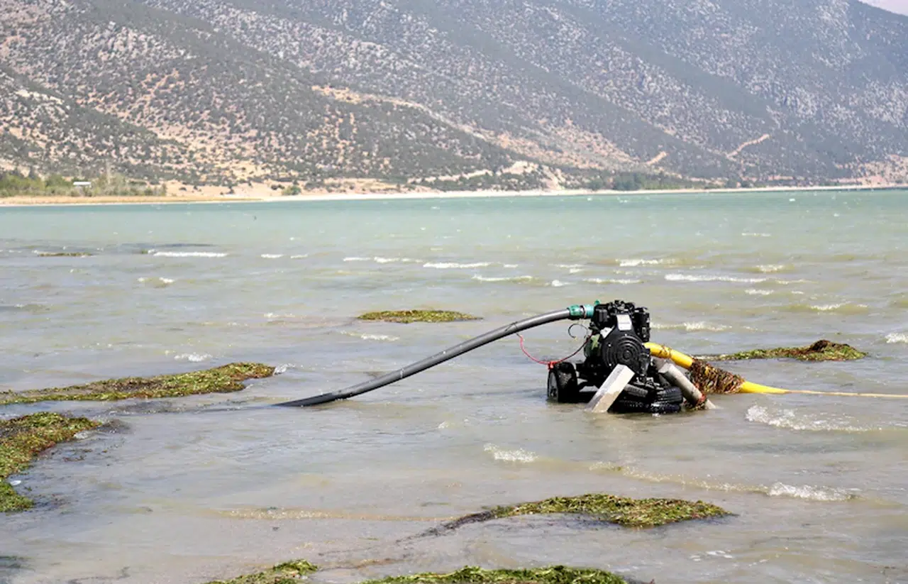 Mehmet ÇINAR/ISPARTA, (DHA)-VAHŞİ tarımsal sulama ve aşırı kirlilik nedeniyle can çekişen Eğirdir Gölü etrafındaki binlerce dönümlük tarım arazisinde kaçak sondajlardan su çıkmayınca, göl içinden yüzeysel sondajlarla su alımı yapılmaya başlandı. Bilim Danışmanı Dr. Erol Kesici, "Yer altı suları da tükendiğinden artık birçok bahçeye gölden direkt yüzeysel sondajla su alımı yapıldığını görüyoruz" dedi.