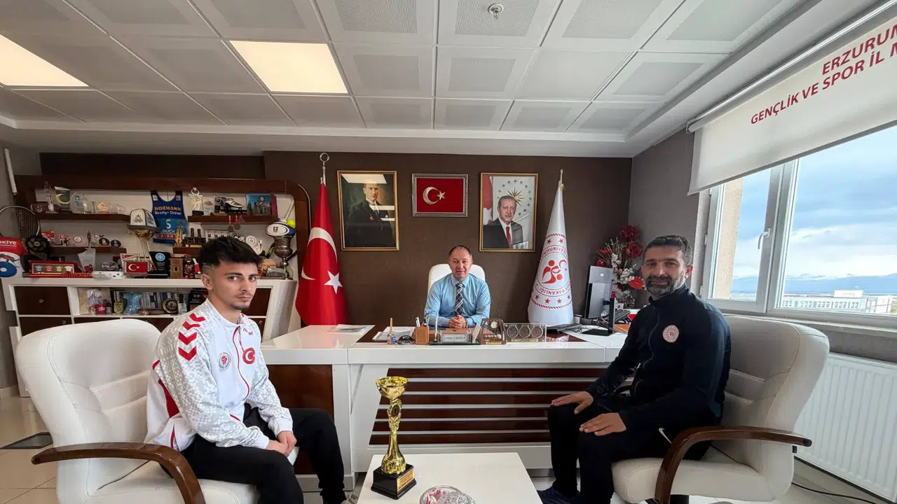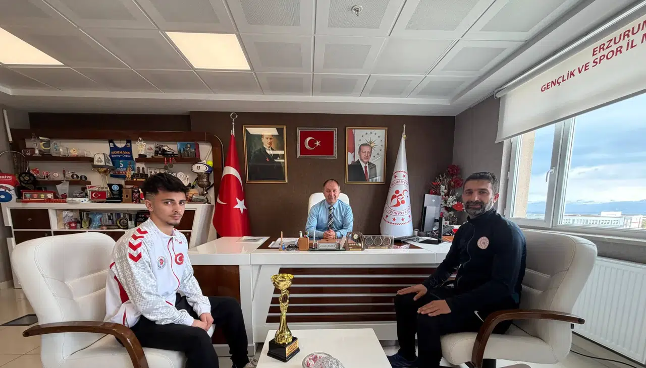 Elde ettiği bu önemli başarıyla Erzurum’u gururlandıran genç sporcu, antrenörü İbrahim Bostancı ile birlikte Erzurum Gençlik ve Spor İl Müdürü Levent Çakmur ve Spor Hizmetleri Müdürü Erdoğan Dönmez’i ziyaret etti. Ziyarette şampiyonluk süreci ve elde edilen başarı paylaşılırken, sporcu ve antrenörü tebrik edildi.