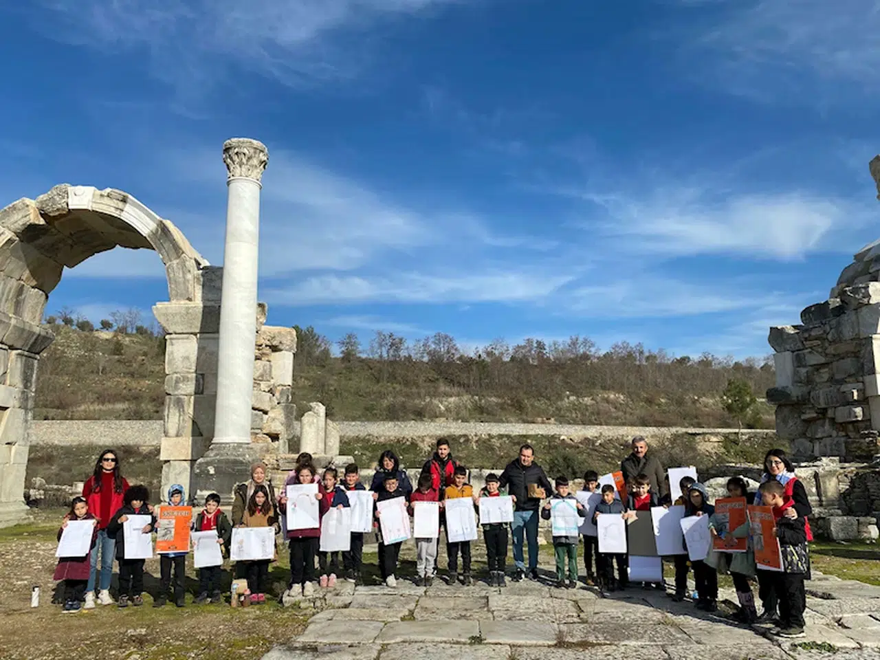 Cavit AKGÜN / MUĞLA, (DHA) -MUĞLA'nın Yatağan ilçesinde 3 bin 500 yıl önce kurulan dünyanın en büyük mermer antik kenti Stratonikeia'yı ziyaret eden ilkokul öğrencileri, kentte bulunan eserlerin resimlerini çizdi.