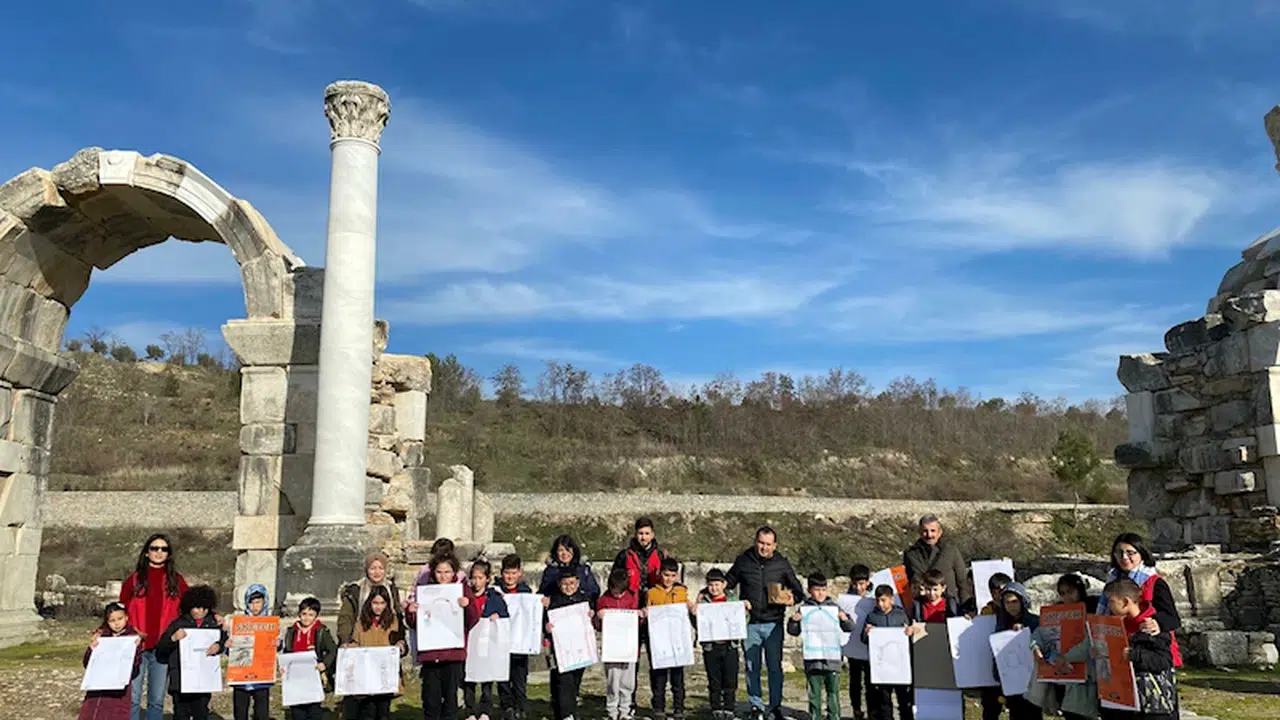 Muğla Gençlik ve Spor İl Müdürlüğü Uluslararası Gençlik Merkezi tarafından başlatılan 'Çocuklar tarihin içinde öğreniyor' etkinliği kapsamında, Stratonikeia Antik Kenti'nde etkinlik düzenlendi. İlkokul öğrencileri, tarihi alanları ziyaret ederek kazı çalışmalarına dair bilgi aldı. Tarihin içinde yolculuğa çıkan öğrenciler, öğrendiklerini sahada uygulama fırsatı buldu. Etkinlik kapsamında, Görsel Sanatlar Öğretmeni koordinasyonunda desen atölyesi çalışması gerçekleştirildi. Öğrenciler, Uluslararası Gençlik Merkezi gönüllü gençleri ve merkez eğitmenleriyle birlikte tarihi yapıların desenlerini çizerek sanatsal çalışma yaptı.