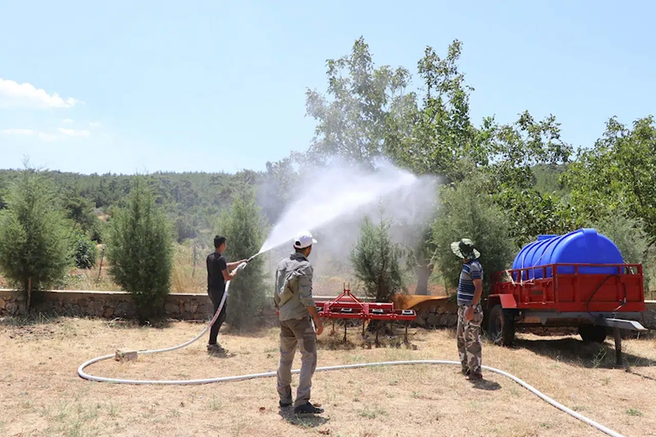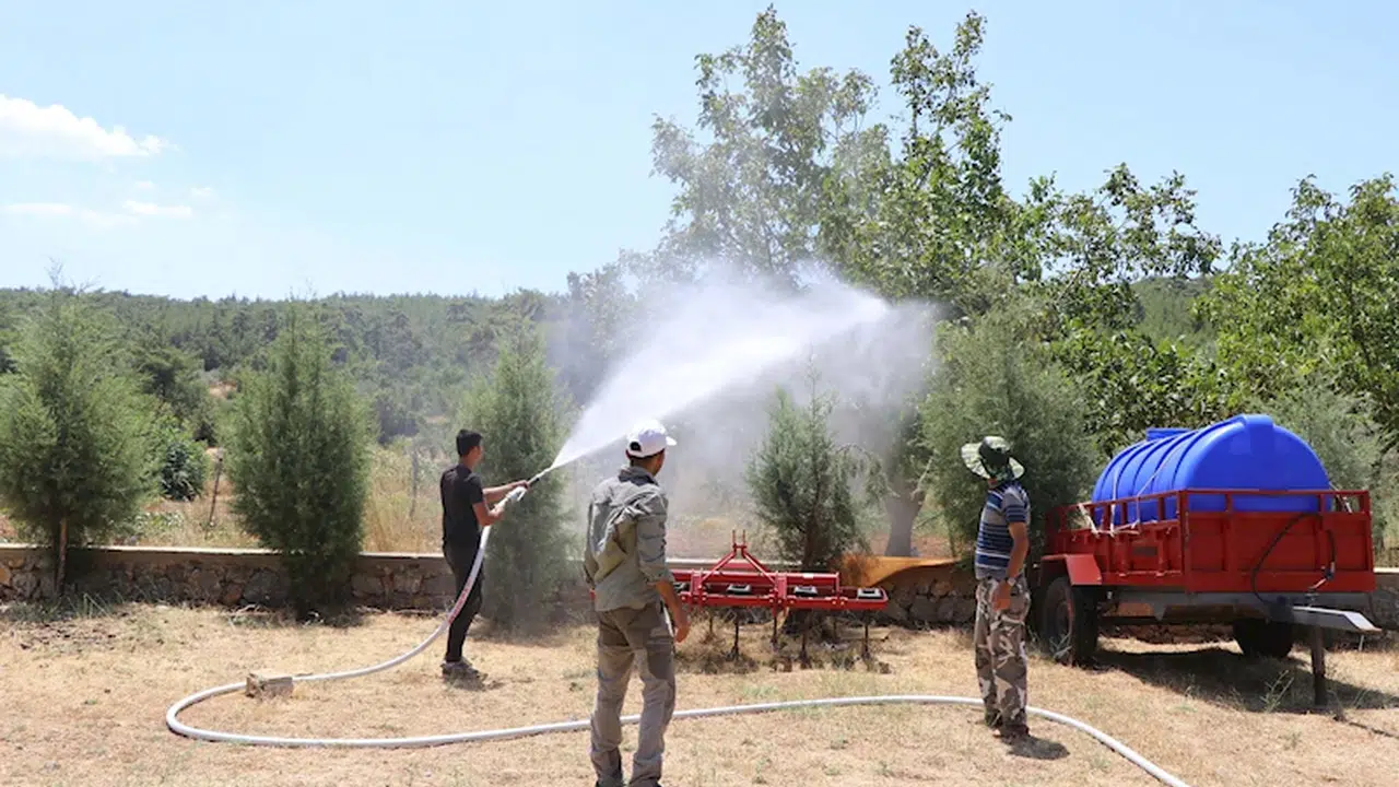 Sulama tankerleriyle yangın nöbeti tutuyorlar