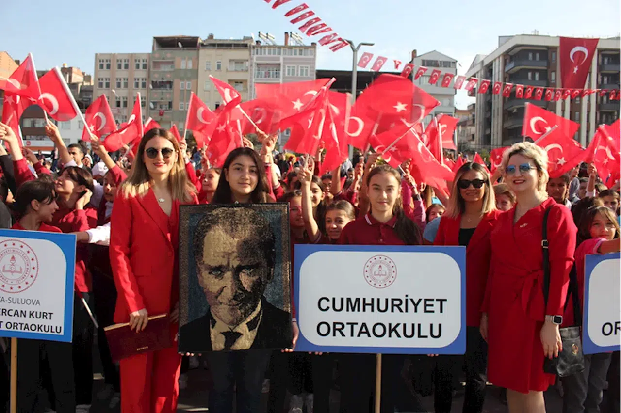Program öğrencilerin şiirler okuması, halk oyunları gösterisinin ardından geçit töreni ile sona erdi.