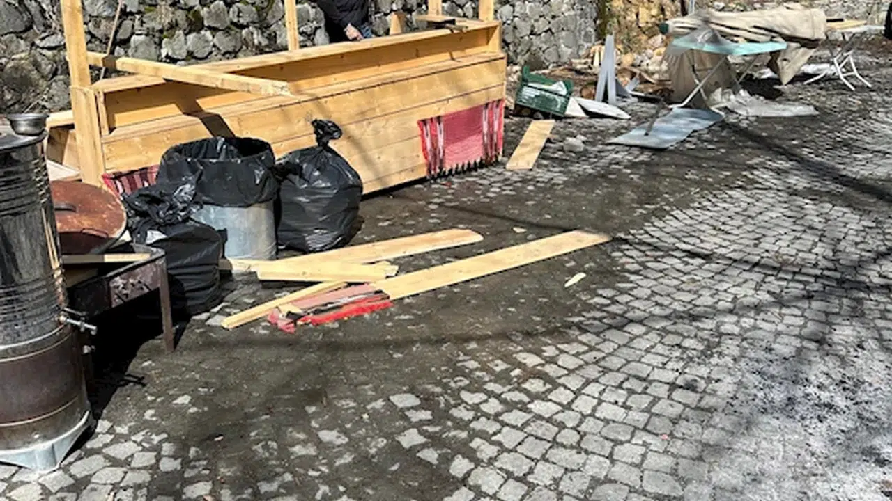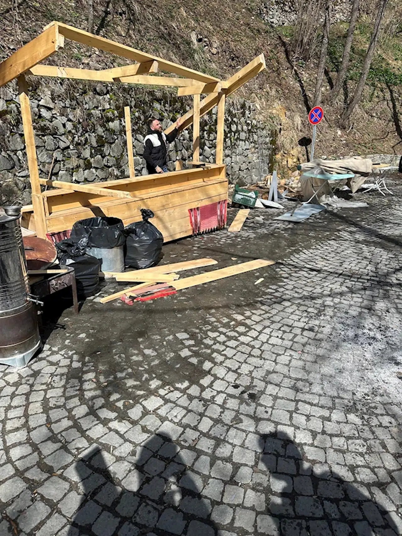 TRABZON,(DHA)- Trabzon Büyükşehir Belediyesi zabıta ekipleri, Sümela Manastırı çevresinde seyyar satış yapanlara ait tezgahları kaldırdı.