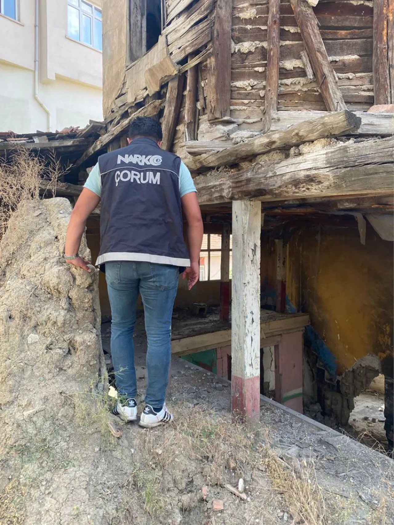 Çorum İl Emniyet Müdürlüğü Narkotik Suçlarla Mücadele Şube Müdürlüğü ile Sungurlu İlçe Emniyet Müdürlüğü ekipleri, ilçedeki metruk alanlarda arama yaptı.