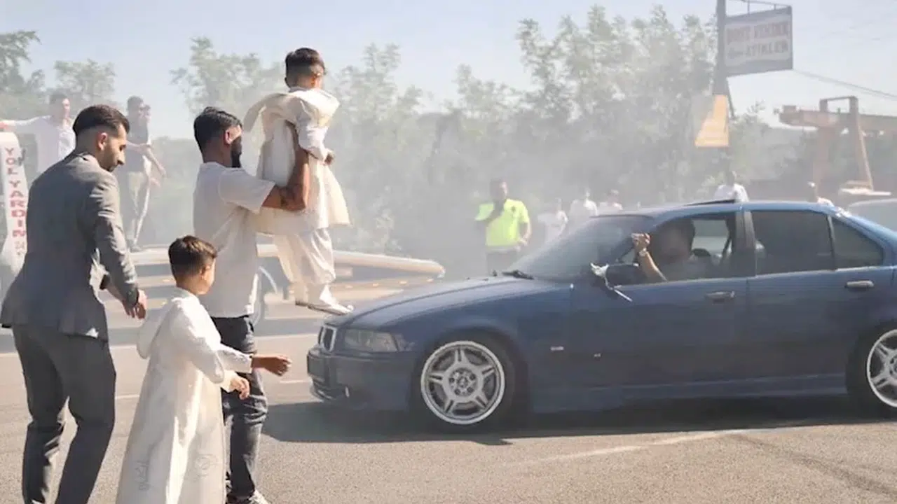 Olay, dün saat 13.00 sıralarında Ünye ilçesinde meydana geldi. İlçeye bağlı Çaybaşı-Ünye yolunda sünnet düğünü konvoyundaki Ahmetcan Arpacıoğlu, 52 AES 567 plakalı otomobiliyle, sünnet olacak çocukların çevresinde drift atarak döndü. O anlar, çevredekiler tarafından cep telefonu kamerasıyla kayda alındı. Sürücüye işlem yapmak için alana giden polis memuru, bir yandan da cep telefonuyla o anları kayda aldı. Plakası takılmadığı görülen otomobilin sürücüsü Ahmetcan Arpacıoğlu, çocukların etrafında birkaç tur döndükten sonra polisi fark edip alandan hızla uzaklaştı.