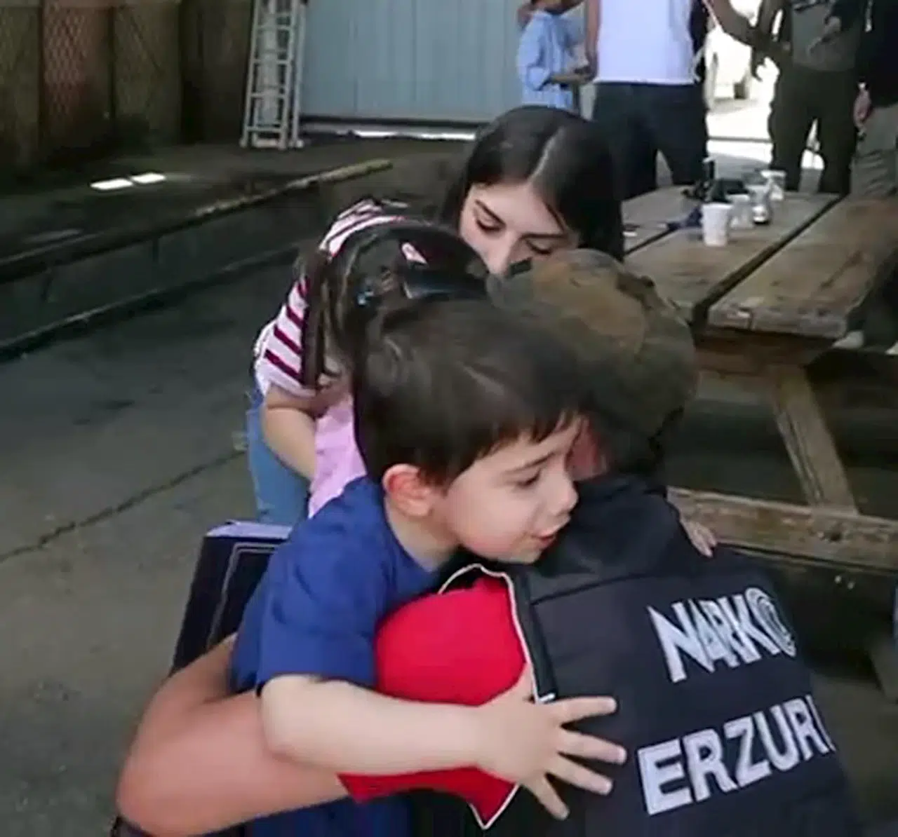 Erzurum Emniyet Müdürlüğü Toplum Destekli Polislik Şubesi ekipleri, kent merkezinde farklı noktalarda görev yapan meslektaşları için sürpriz Babalar Günü kutlaması gerçekleştirdi. Evlerinden alınan polis aileleri, otobüsle yola çıktı. Uygulama noktasına doğru giden otobüsle ilgili şüpheli araç ihbarı yapıldı. Uygulama noktasında otobüsleri durduran polisler, içerisinden inen çocuk ve eşlerini görünce şaşırdı. Araçlardan inen çocuklar, babalarına sarılarak günlerini kutladı ve hediyelerini verdi. Polis memurları, aileleri ile 'Babalar gününüz kutlu olsun" yazılı pastayı keserek hatıra fotoğrafı çektirdi. (DHA)