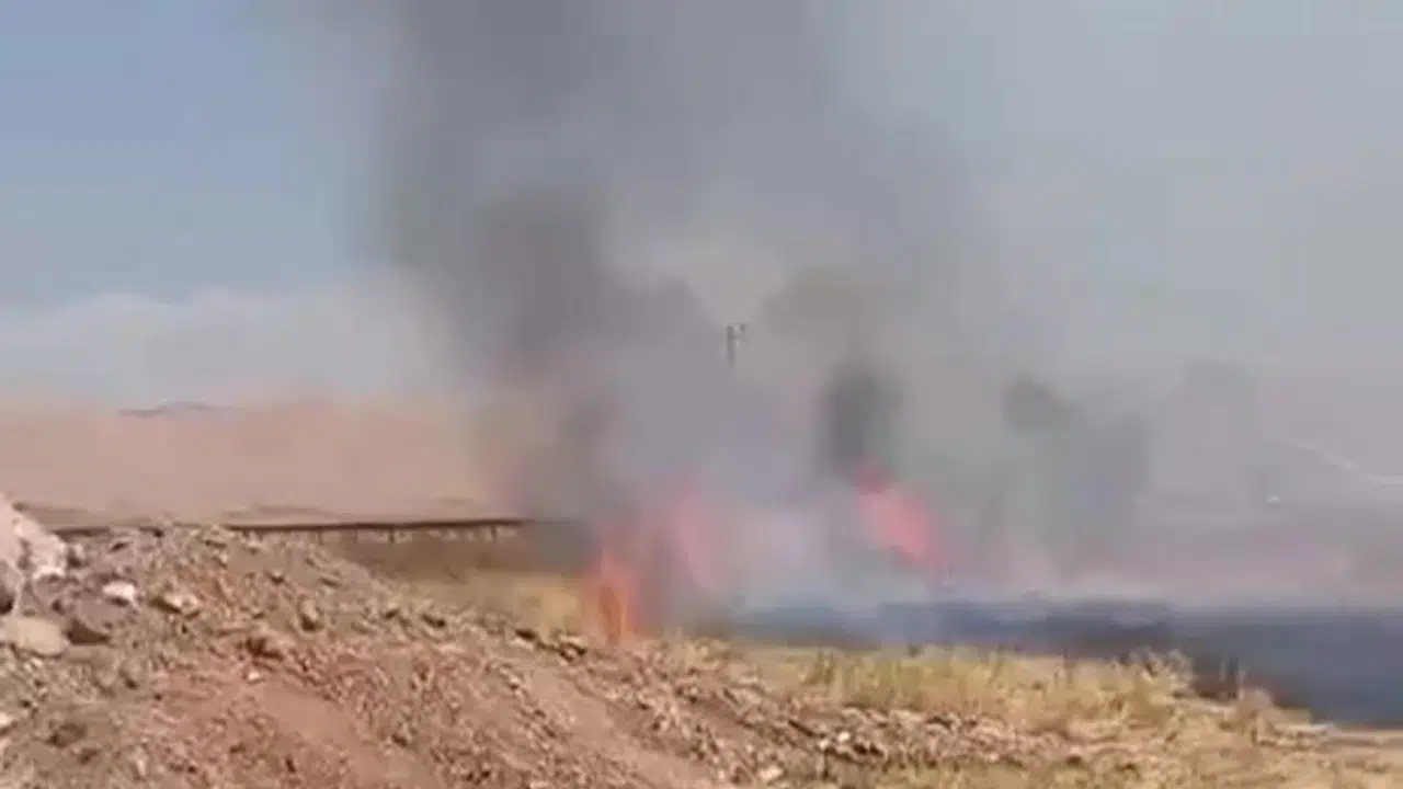 Yangın, öğle saatlerinde Nusaybin ilçesi ile Suriye’nin Kamışlı kenti arasındaki mayınlı sınır bölgesinde bilinmeyen bir nedenle çıktı. Rüzgarın etkisiyle büyüyerek anız tarlasına sıçrayan yangın, ihbar üzerine bölgeye gelen itfaiye ekiplerinin müdahalesiyle sondaj aracına sıçramadan söndürüldü. (DHA)