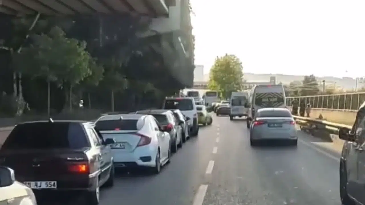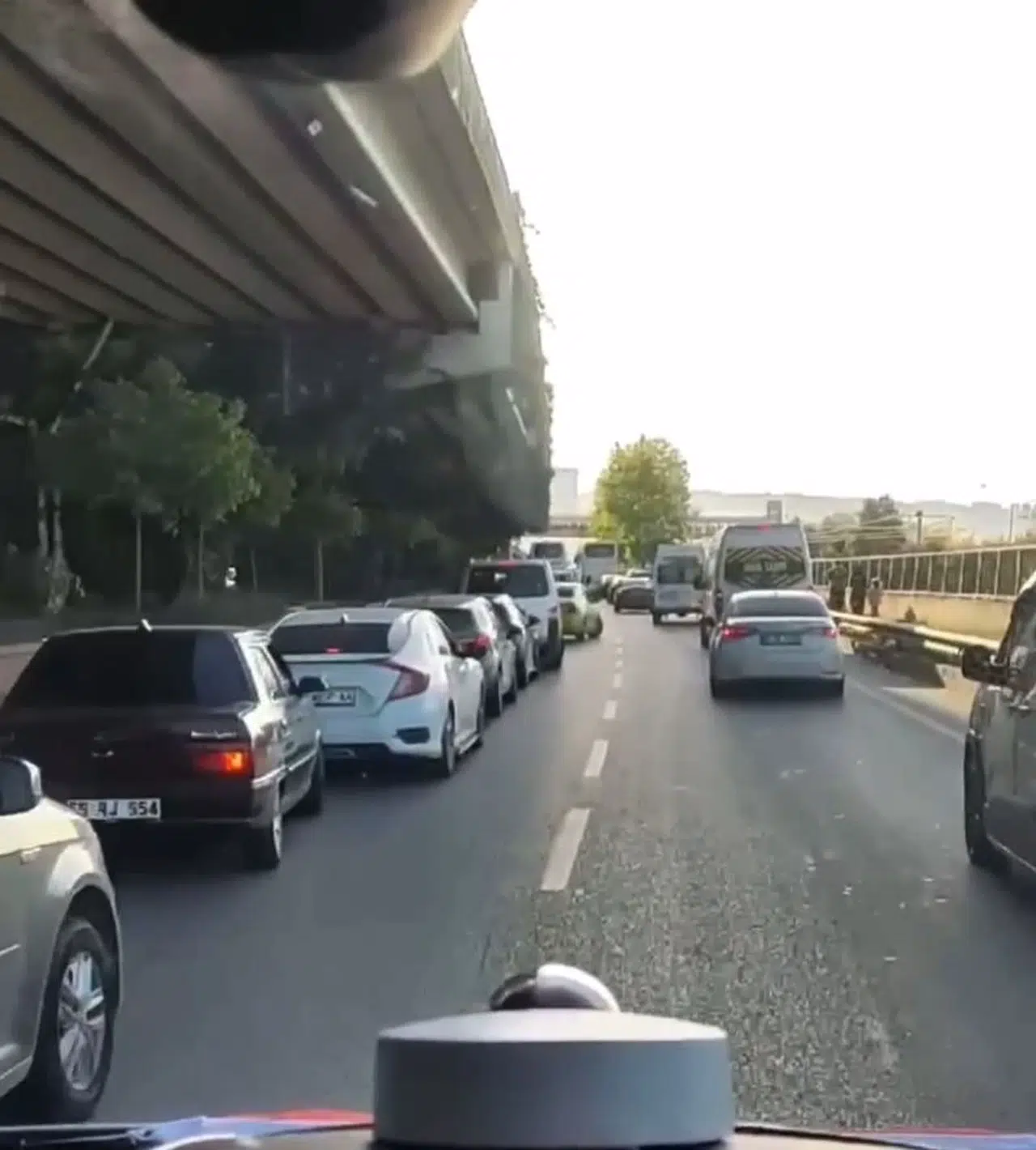 Sürücülerin fermuar yöntemiyle ambulansa yol verme anı kamerada