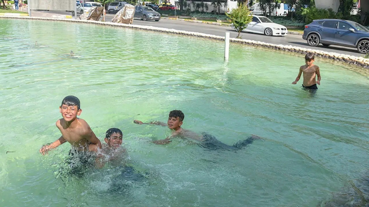 Antalya'da yol kenarı ve kavşaklardaki süs havuzları, çocukların oyun alanı oldu. Sıcaktan bunalan çocuklar, arkadaşlarıyla süs havuzlarında eğlenceli vakit geçirip serinleyip tercih etti. İçerisindeki aydınlatma ve fıskiye sistemi nedeniyle olası kaçak akım tehlikesi bulunan havuzlara giren çocuklar, yüzüp oynadı. Hijyen koşullarına aldırmadan yüzen çocukların havuzdaki fıskiye ile ışıklandırma sistemi demirlerini tramplen olarak kullanması dikkati çekti. Yaklaşık yarım metre derinliğindeki havuza atlayan, takla atan çocuklar, başlarını zemine çarpma tehlikesine aldırmadan birbiriyle şakalaştı.