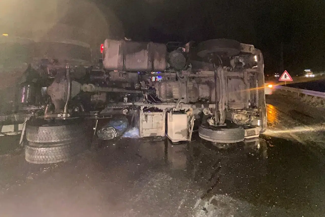 Kaza, saat 21.30 sıralarında Balıkesir- Bursa karayolunun Bursa istikameti, Susurluk Şeker Fabrikası mevkisinde meydana geldi. E.Y. yönetimindeki 35 TCE 66 plakalı TIR, sürücüsünün direksiyon kontrolünü yitirmesi sonucu yol kenarına devrildi. İhbar üzerine kaza yerine itfaiye, polis ve sağlık ekipleri sevk edildi. İtfaiye ekiplerinin sıkıştığı yerden çıkardığı şoför, sağlık ekiplerince Susurluk Devlet Hastanesi'ne kaldırılarak, tedaviye alındı.