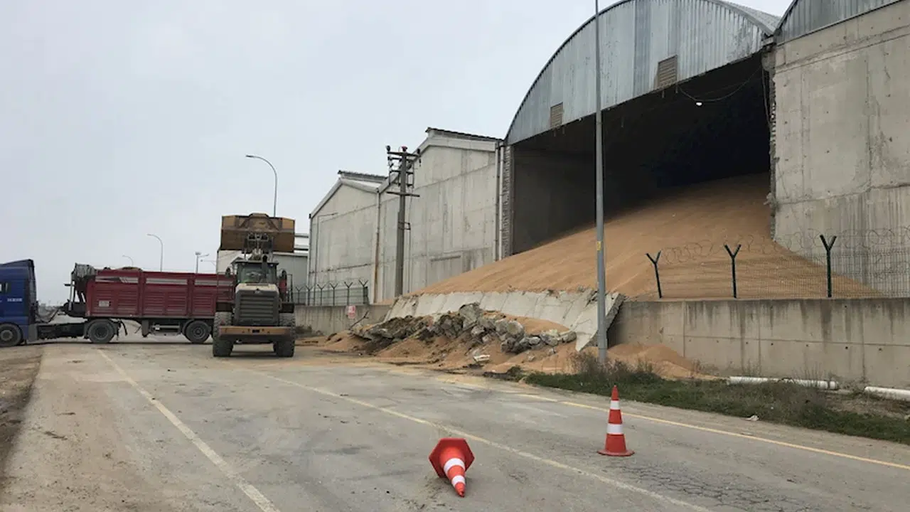 Levent KIZILASLAN/KARASU (Sakarya), (DHA)- Sakarya'nın Karasu ilçesindeki özel bir liman işletmesinin tahıl deposunun duvarı çöktü.