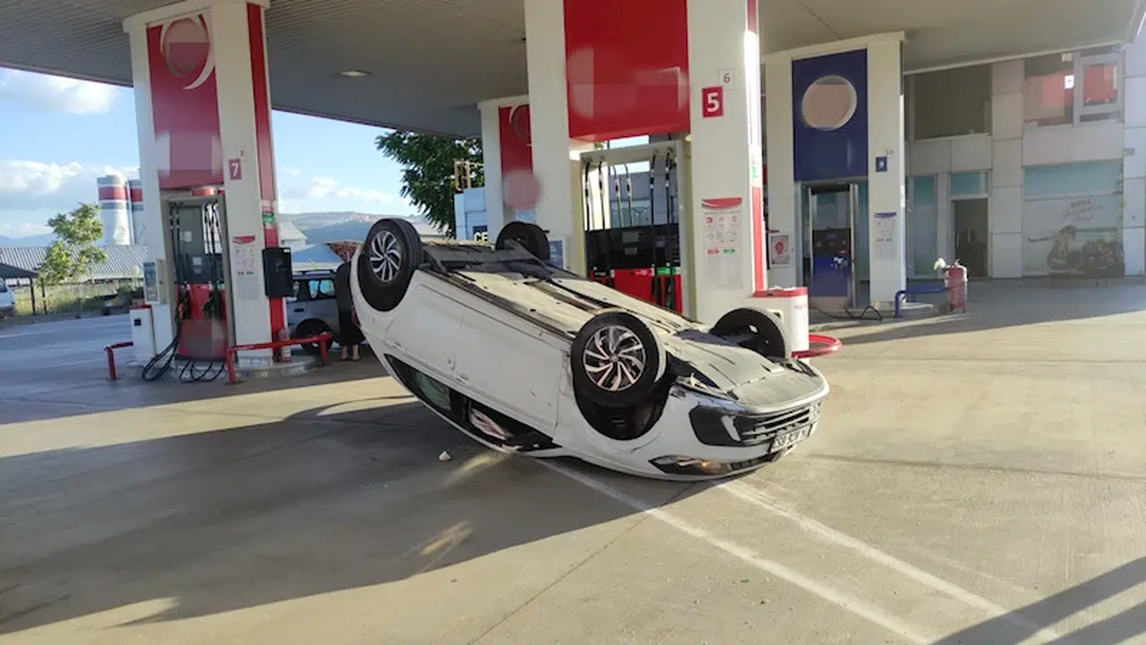 Takla atan otomobil akaryakıt istasyonuna daldı; sürücünün yaralandığı kaza kamerada/ Ek fotoğraflar
