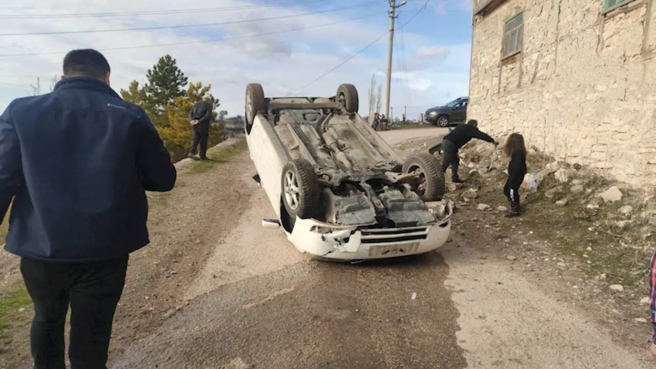 Mustafa YİĞİT/DOMANİÇ(Kütahya),(DHA)- KÜTAHYA’nın Domaniç ilçesinde sürücüsünün direksiyon hakimiyetini kaybettiği otomobil takla atarak ters döndü. Kazada araçtaki karı-koca yaralandı.