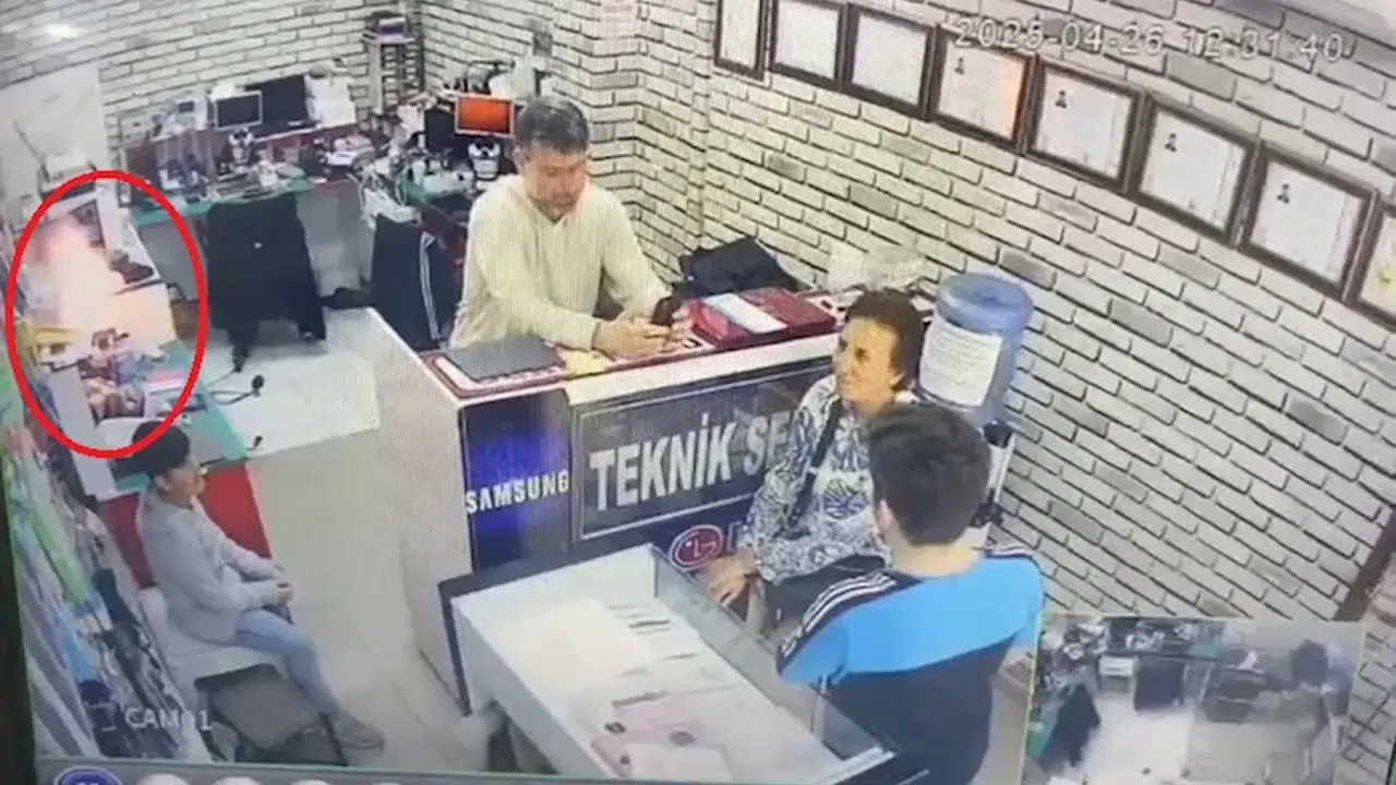 Olay, önceki gün Sur ilçesi İnönü Caddesi’ndeki bir cep telefonu tamir dükkanında meydana geldi. Tamir için getirilen cep telefonunun bataryası tezgahın üzerindeyken aniden patladı. İçeride bulunan müşteriler kısa süreli panik yaşadı. İşletme sahibi ise yanmaya başlayan telefonu yere attı ardından ayaklarıyla iterek dışarı çıkardı. O anlar güvenlik kamerasına yansıdı. (DHA)