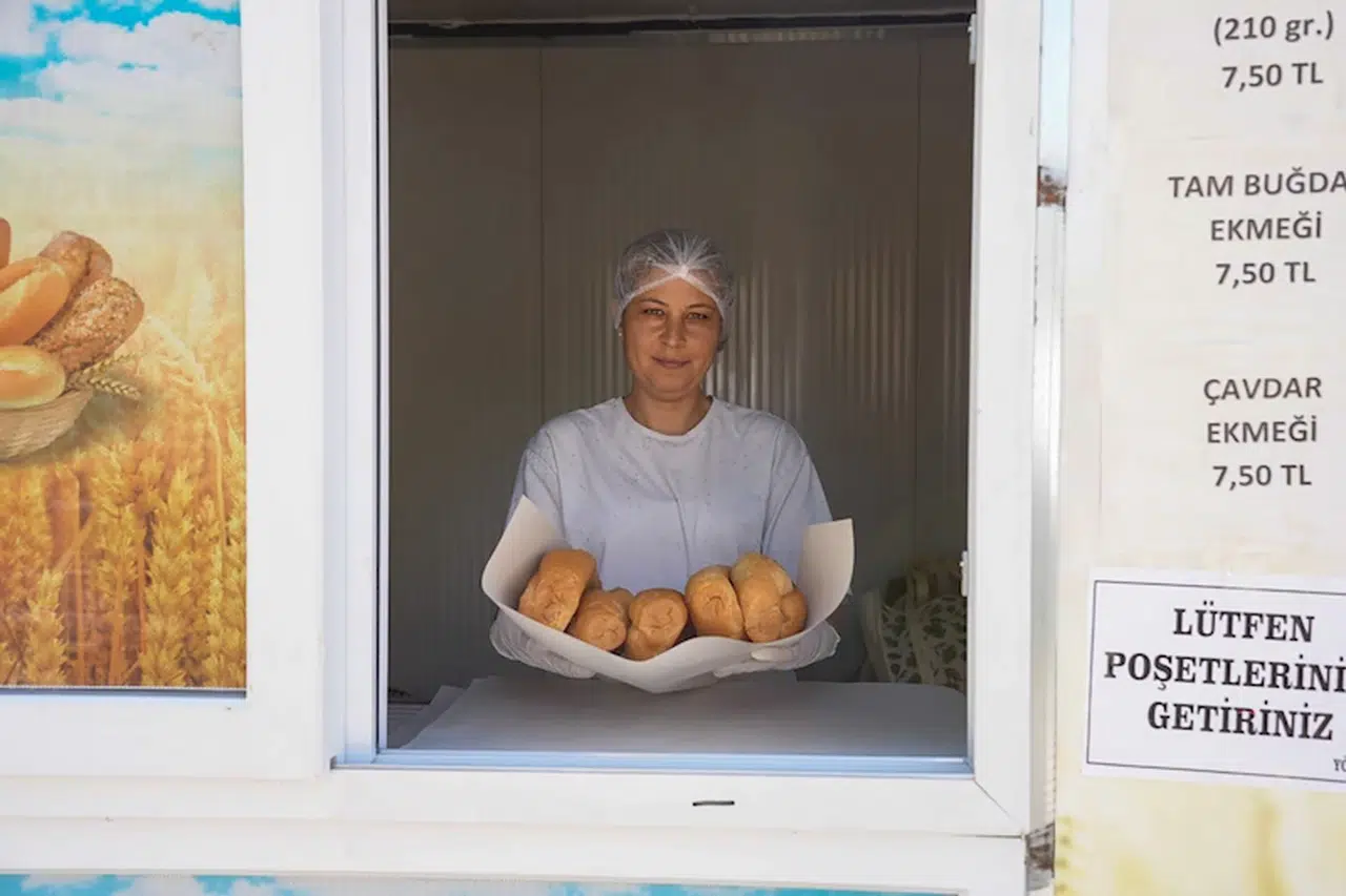 Okan ÇALIŞKAN/TARSUS(Mersin), (DHA)-TARSUS Belediyesi'nin ürettiği ekmekler, kadınların işlettiği büfeler aracılığıyla vatandaşlara ulaştırılıyor.