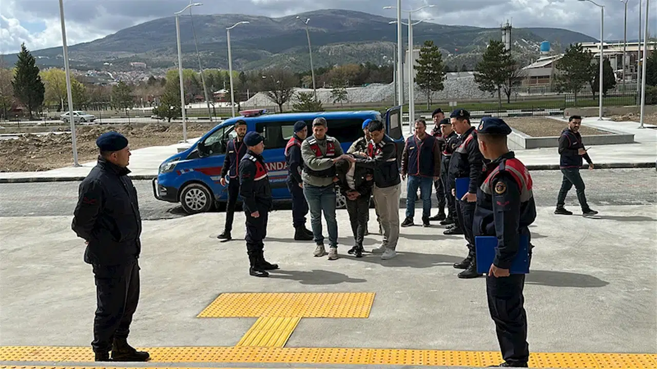 Jandarma Komutanlığı'nda işlemleri tamamlanan şüpheli Uğur Ö., Kütahya Adliyesi'ne sevk edilip savcılık sorgusuna alındı. Soruşturma sürüyor. (DHA)