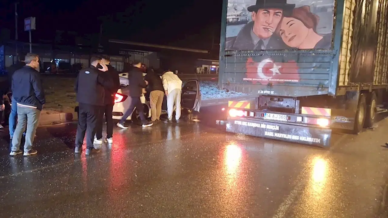 Kaza, akşam saatlerinde Mudurnu ilçesine bağlı Yıldırım Beyazıt Mahallesi'nde meydana geldi. Furkan Adalı idaresindeki 34 EKF 690 plakalı otomobil, kavşakta Berkant Demirel yönetimindeki 14 AJ 360 plakalı canlı tavuk yüklü kamyonla çarpıştı. Kazada otomobilde bulunan İbrahim Tozan ve Fatih Yeşil yaralandı. İhbar üzerine olay yerine gelen 112 acil sağlık ve polis ekipleri sevk edildi. Hafif yaralanan 2 kişi ambulansla Mudurnu Devlet Hastanesi’ne kaldırıldı.