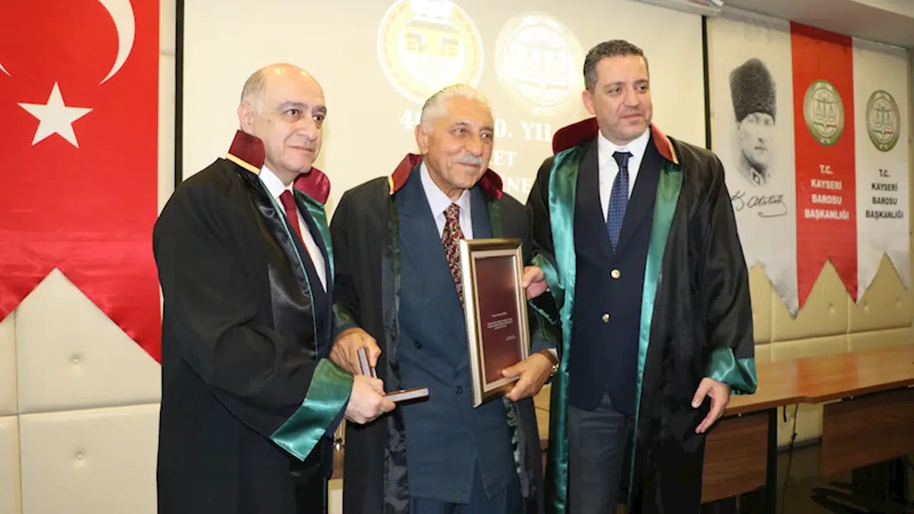 Protokol konuşmalarının ardından meslekte 40 ve 50'nci yılını dolduran Kayseri Barosu'na kayıtlı 26 avukata plaketleri takdim edildi. (DHA)