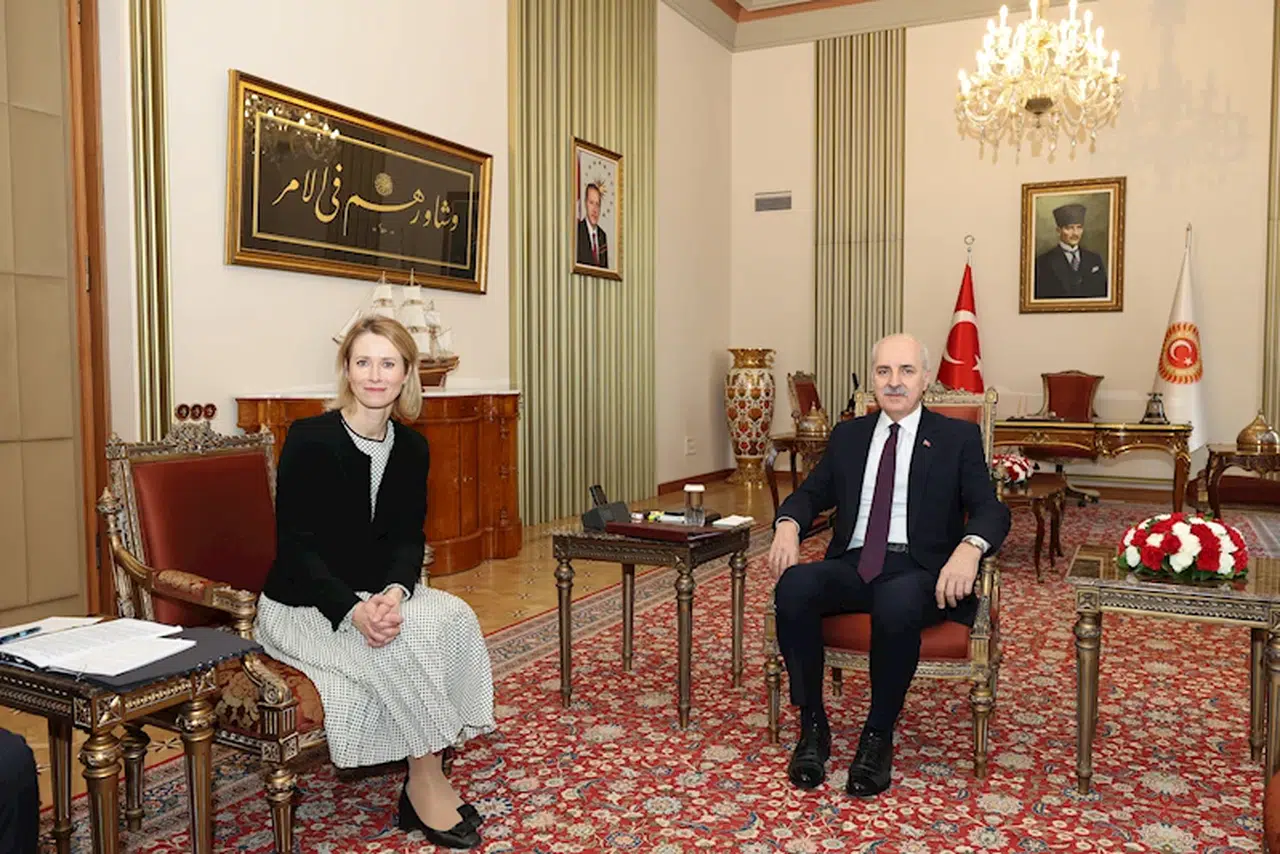 Meclis Başkanlığı'ndan yapılan açıklamaya göre; TBMM Başkanı Numan Kurtulmuş, AB Dış İlişkiler ve Güvenlik Politikası Yüksek Temsilcisi Kaja Kallas'ı Meclis'te kabul etti. Kurtulmuş, Türkiye'ye resmi ziyaret gerçekleştiren Kallas ve heyetini TBMM'de ağırlamaktan duyduğu memnuniyeti dile getirerek, yeni görevinde başarılar diledi. Kurtulmuş, Kallas'ın görevi sırasında Türkiye-AB ilişkilerinde önemli gelişmelerin olması temennisini de ifade etti. Türkiye'nin AB üyelik perspektifinin samimi bir şekilde devam ettiğini, TBMM'nin de aynı şekilde AB'ye tam üyelik konusundaki bakış açısının oldukça açık olduğunu belirten Kurtulmuş, Türkiye'nin reform perspektifine sahip bir ülke olduğunu, dün de Cumhurbaşkanı Recep Tayyip Erdoğan tarafından Cumhurbaşkanlığı Külliyesi'nde geniş toplum kesimlerinin memnuniyetle karşıladığı Yargı Reformu Paketi'nin açıklandığını aktardı.