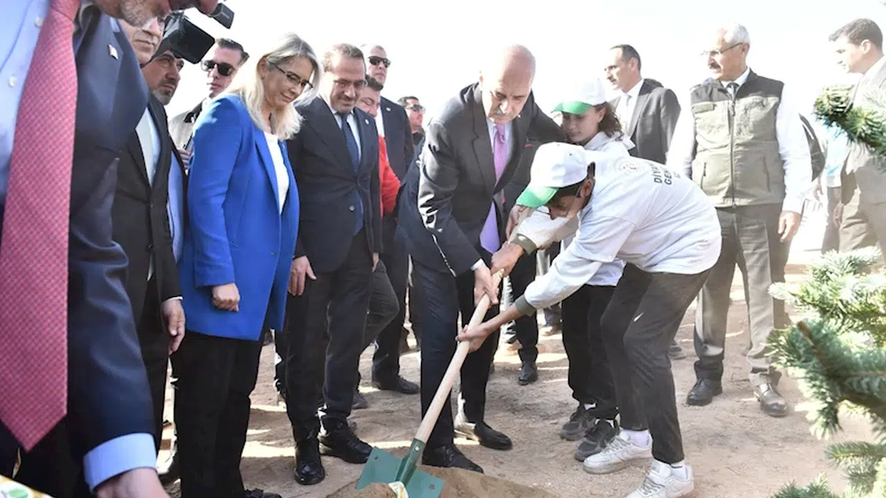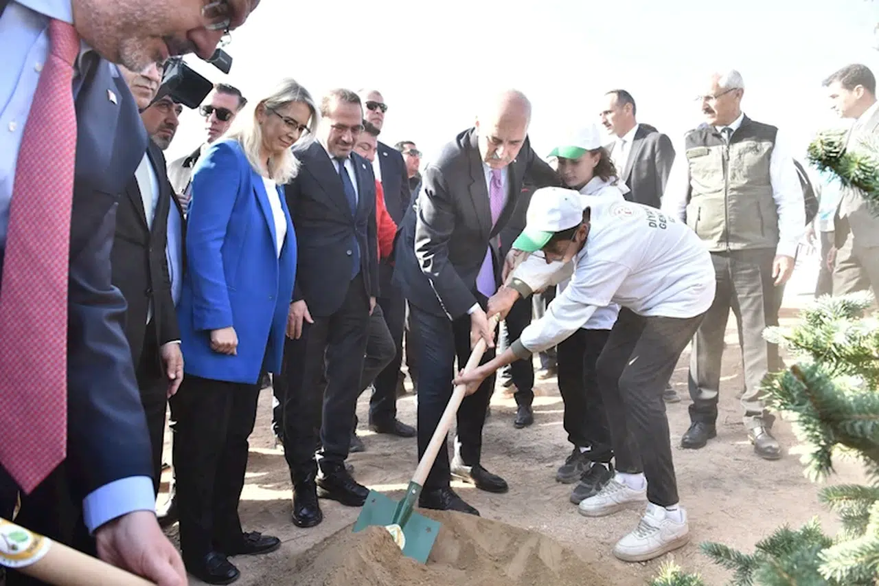 Konuşmaların ardından Kurtulmuş ve protokol üyeleri alana fidan dikti. (DHA)