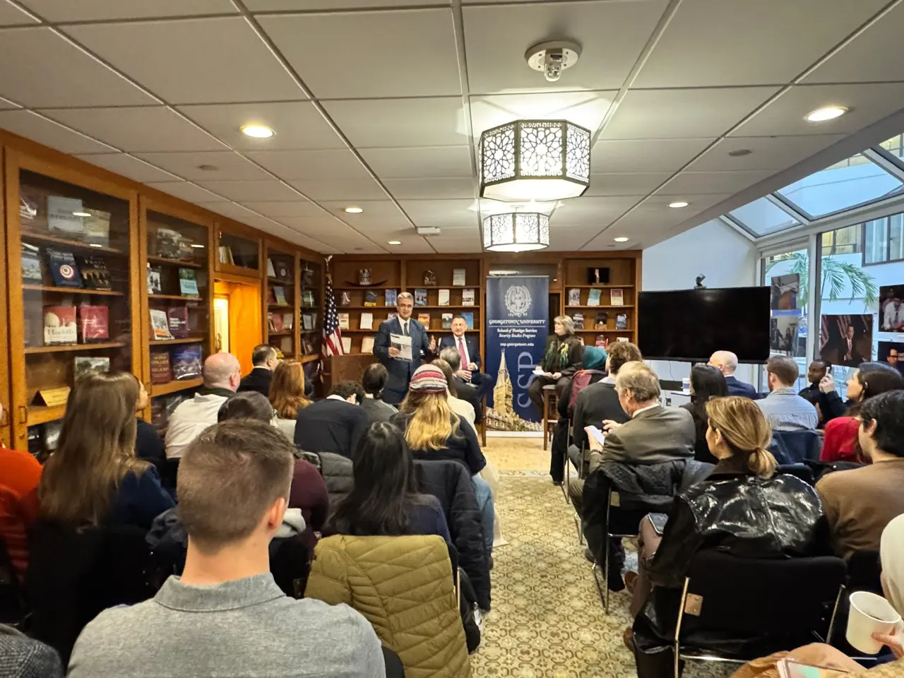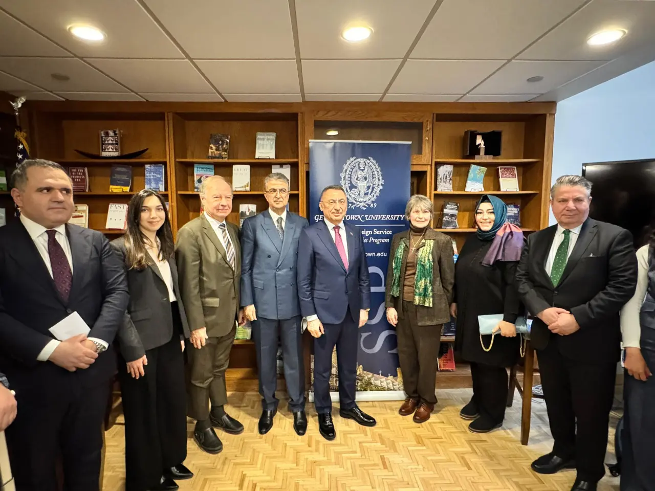 Heyet, sabah saatlerinde Georgetown Üniversitesi’nde öğrenci ve akademisyenlerle bir araya geldi. Görüşmede uluslararası gelişmeler, bölgesel meseleler ve Türkiye-ABD ilişkileri başta olmak üzere ikili gündem konuları ele alındı. Karşılıklı fikir alışverişi şeklinde gerçekleşen toplantıda, Türkiye’nin dış politika vizyonuna ilişkin değerlendirmelerde bulunuldu.